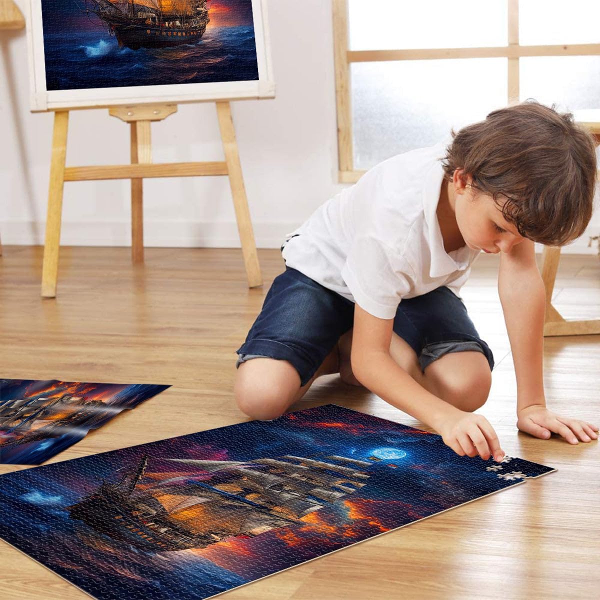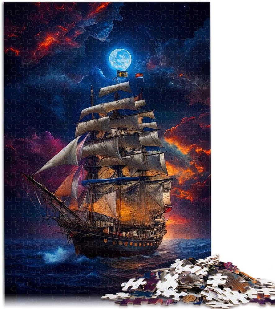 Puzzle da 1000 pezzi con taglio di precisione dipinto di tramonto in barca a vela Fatto di legno per età 14+ Antistress Vacanza a casa Uccidere il tempo Regalo divertente per la famiglia
