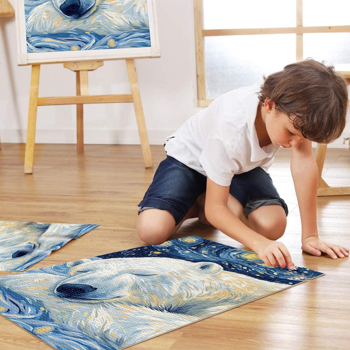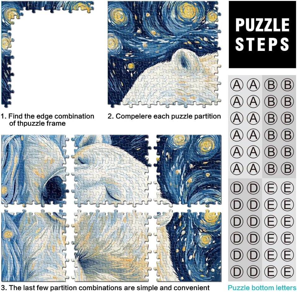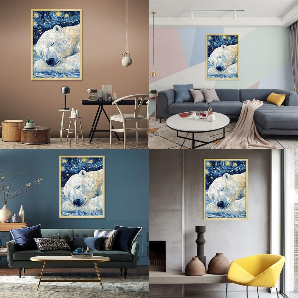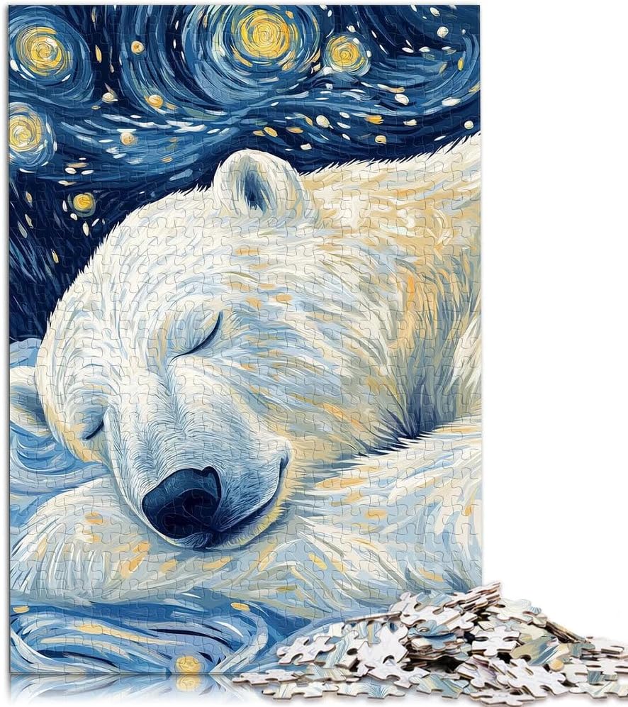 Puzzle da 1000 pezzi con taglio di precisione Notte stellata dell'orso polare Fatto di legno per età 14+ Sfida difficile apprendimento educativo regalo misurare:50x75cm