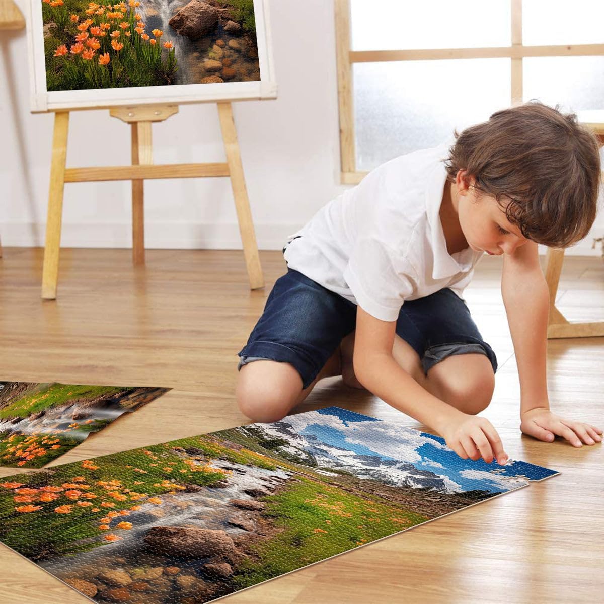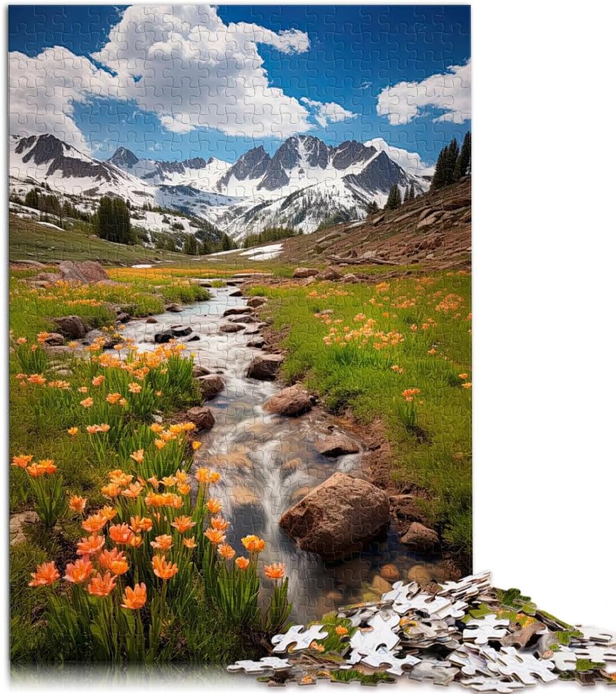 Puzzle da 1000 pezzi con taglio di precisione Poster delle montagne primaverili Fatto di legno per età 14+ Gioco pratico regali per amici e familiari misurare:50x75cm