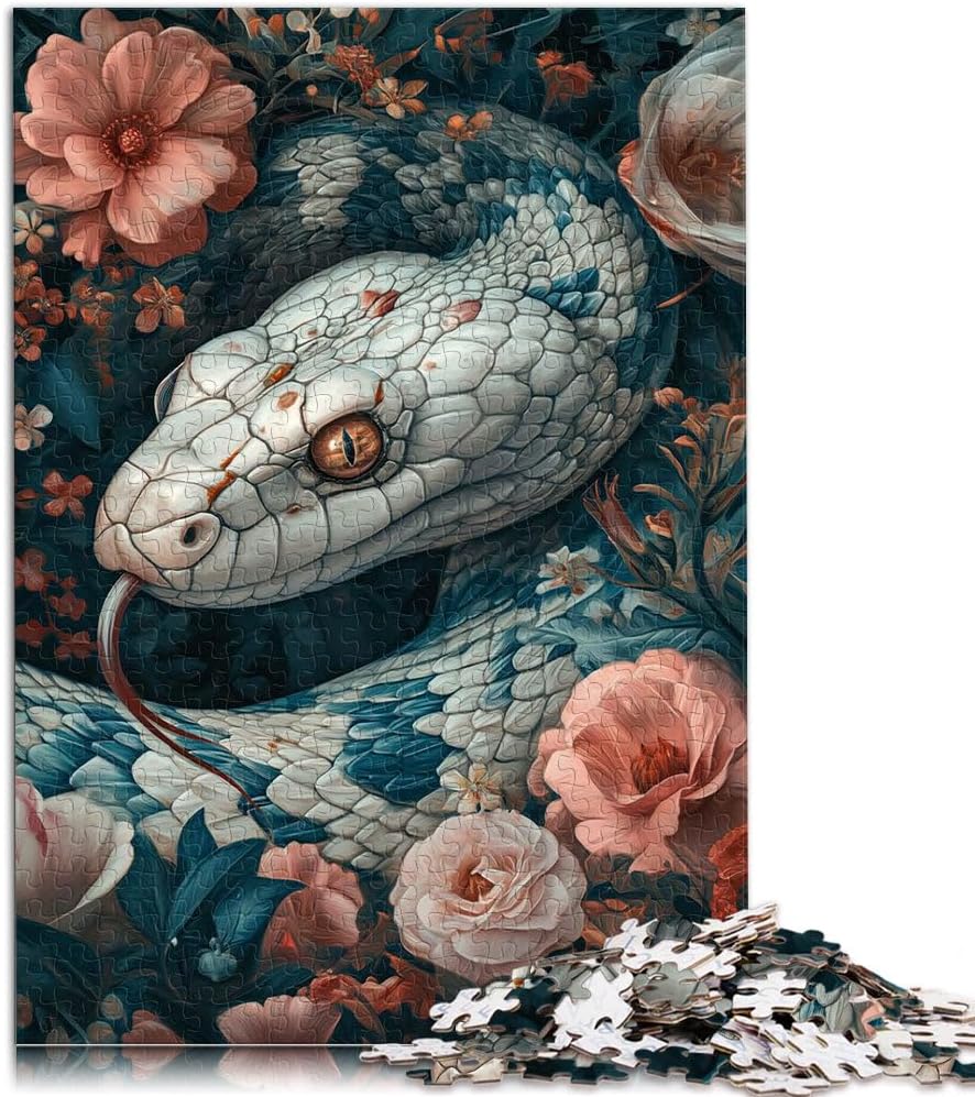 Puzzle da 1000 pezzi con taglio di precisione serpente bianco in fiore Fatto di legno per età 14+ Bellissimo gioco di designBellissimo gioco di design Un'opera d'arte misurare:50x75cm