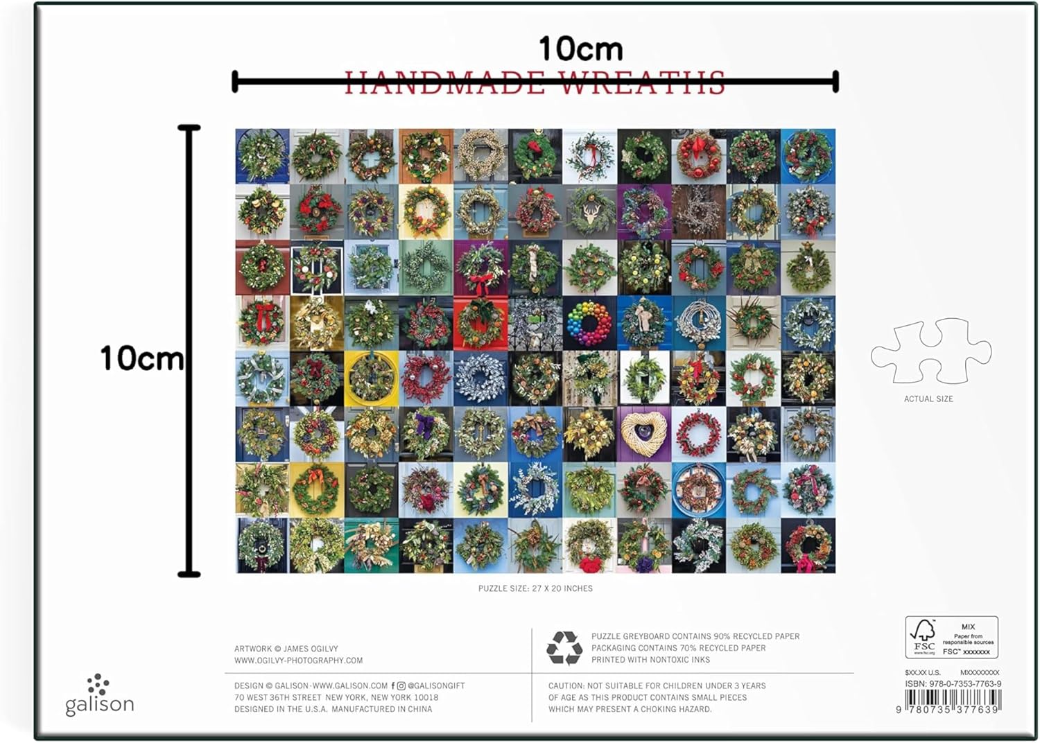 Fatto a mano: ghirlande Puzzle Galison da 1000 pezzi Include 88 ghirlande natalizie fatte a mano fotografate dal fotografo britannico James Ogilvy Include un inserto a colori con l'immagine del puzzle Galison I puzzle sono confezionati in robuste scatole con finitura opaca, perfette da regalare, riutilizzare e conservare L'imballaggio contiene il 70% di carta riciclata ed è realizzato in modo responsabile con materiali certificati FSC
