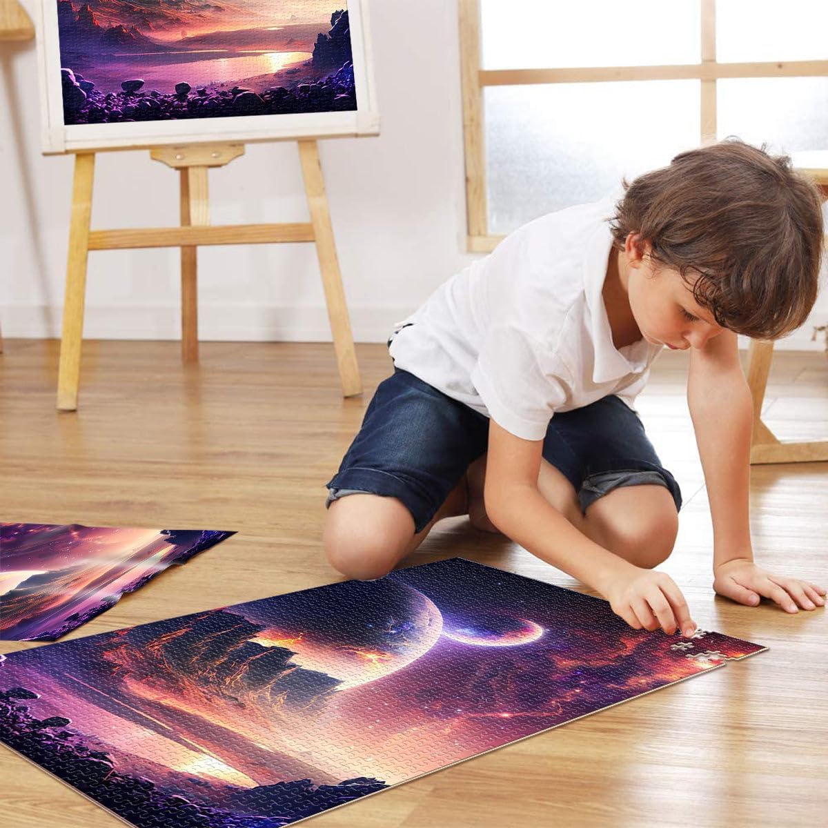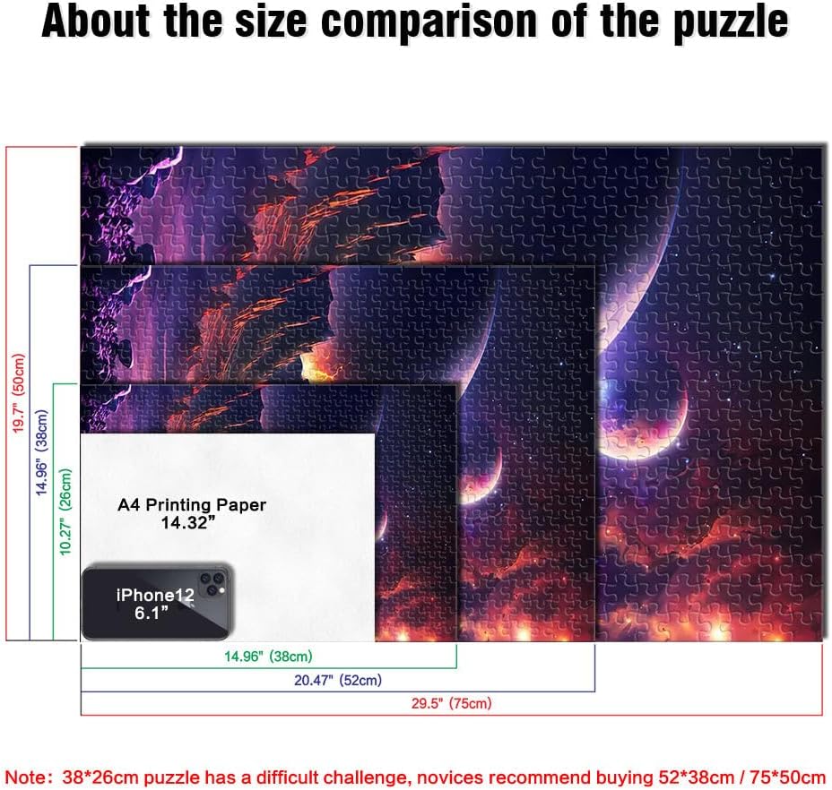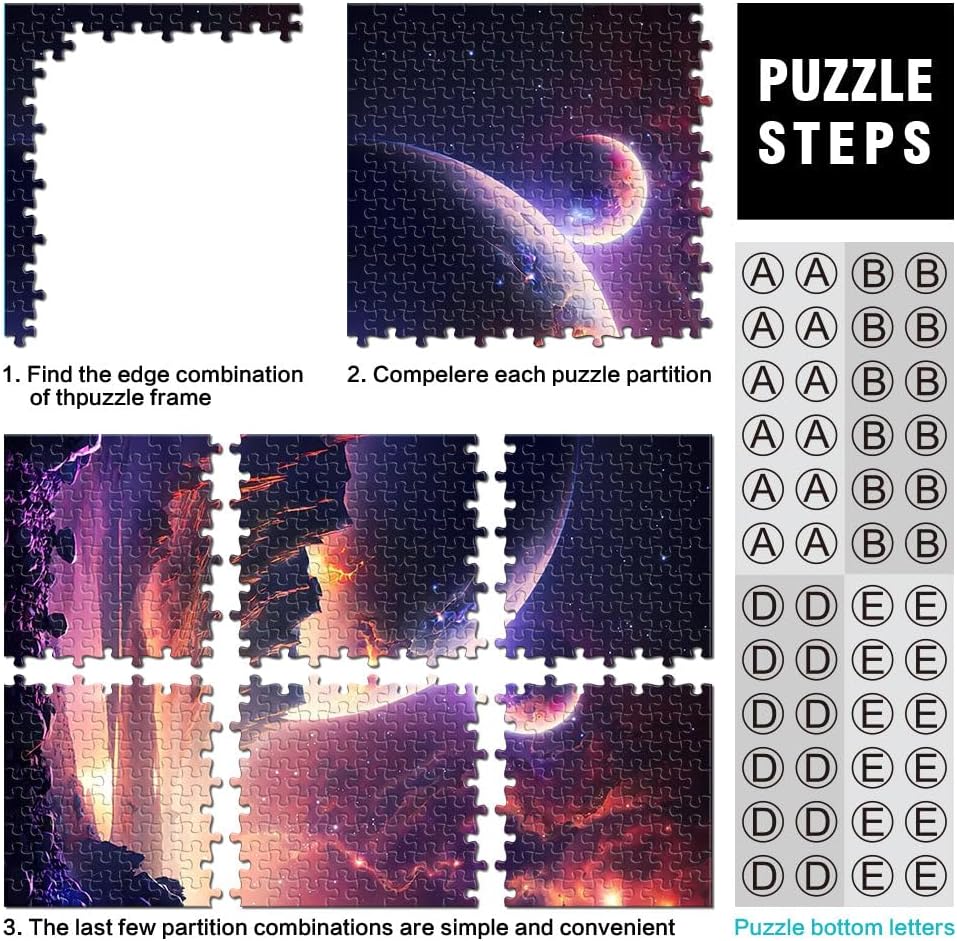 Puzzle da 1000 pezzi per adolescenti Alba della galassia infinita Il puzzle è confezionato in un sacchetto con coulisse e viene fornito con una bella scatola regalo e un poster regalo a grandezza naturale. Dimensioni finali 38x52cm 【Materiale di alta qualità】Realizzato in legno riciclabile di alta qualità, atossico, inodore e privo di polvere. La tecnologia di taglio di precisione garantisce che ogni pezzo del puzzle si adatti perfettamente, offrendoti la migliore esperienza. 【Design unico】: Utilizziamo una tecnologia di taglio di precisione per garantire che ogni pezzo del puzzle si adatti perfettamente senza polvere. Ogni pezzo del puzzle è stampato con inchiostro antiriflesso e atossico. La guida per le lettere sul retro del puzzle fornisce un ulteriore aiuto e rende il puzzle più facile da risolvere. 【Rilassamento e sollievo dallo stress】: I puzzle artistici sono un modo prezioso per godersi del tempo di qualità a casa. Assemblare un puzzle da 1000 pezzi può migliorare l'umore, potenziare le capacità cognitive e migliorare la memoria a breve termine. 【Supporto】 Se riscontri che al tuo puzzle manca un pezzo, non esitare a contattarci e lo sostituiremo con un puzzle con la stessa immagine senza domande o condizioni.