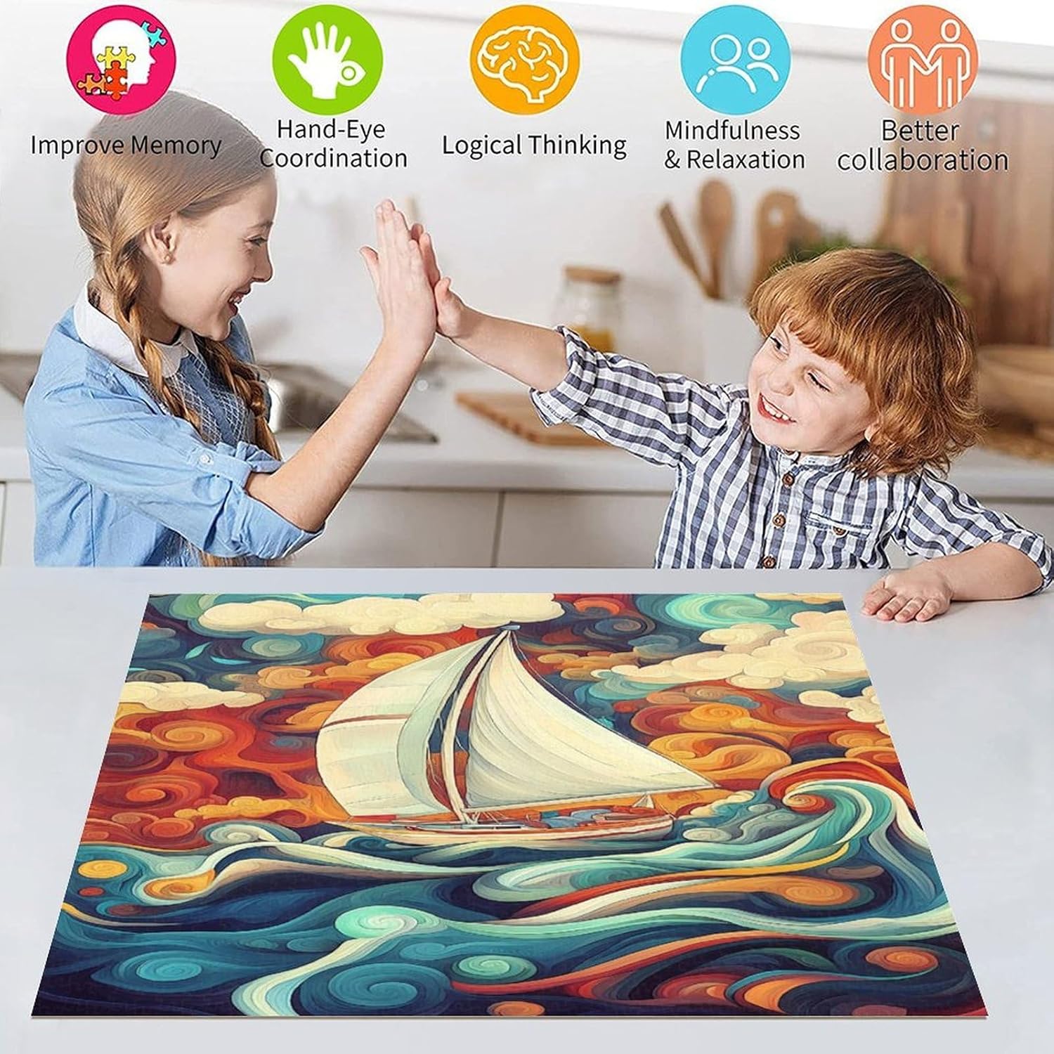 Puzzle da 1000 pezzi per adolescenti, barca psichedelica, gioco stimolante e gioco per famiglie con pezzi completamente interconnessi di forma casuale 50X75CM