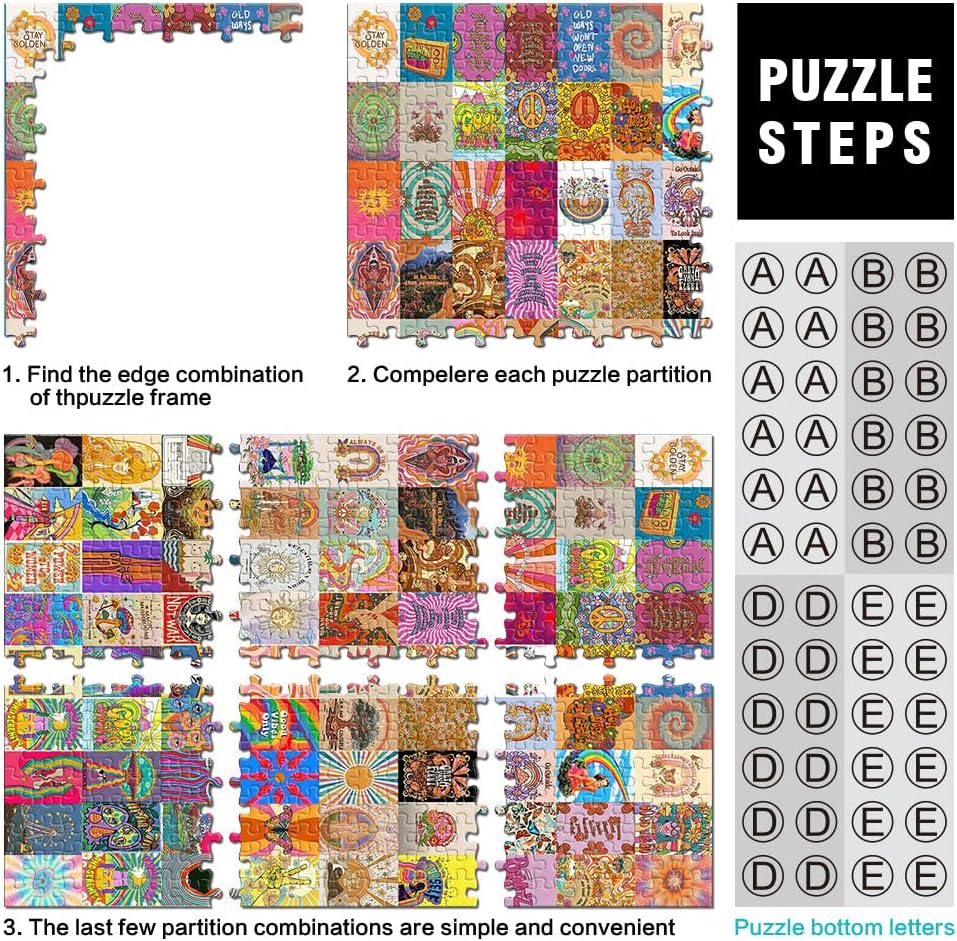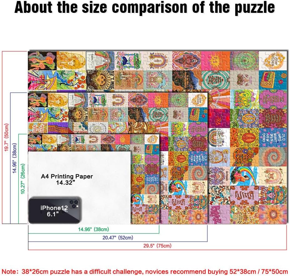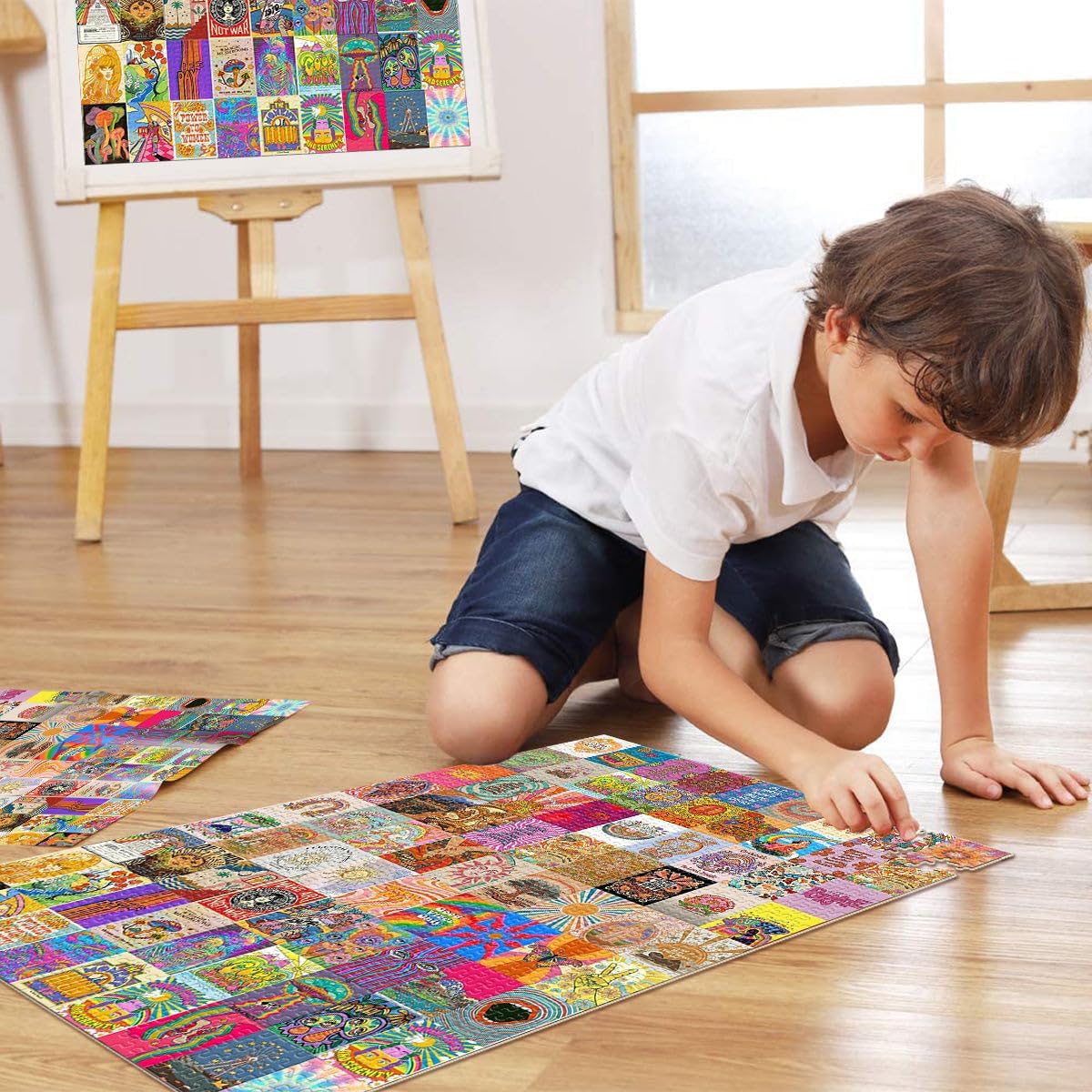 Puzzle da 1000 pezzi per adolescenti collage hippie Fatto di legno per 14+ Gioco intellettuale Regalo per i compleanni misurare:50x75cm