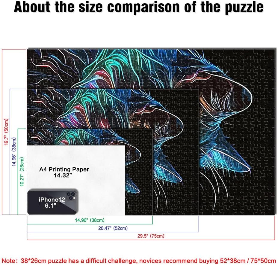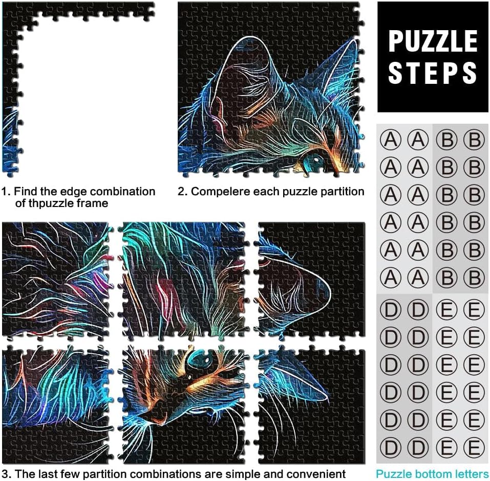 Puzzle da 1000 pezzi per adolescenti Gatto al neon con disegno lineare Il puzzle è confezionato in un sacchetto con coulisse e viene fornito con una bella scatola regalo e un poster regalo a grandezza naturale. Dimensioni finali 50x70cm 【Materiale di alta qualità】Realizzato in legno riciclabile di alta qualità, atossico, inodore e privo di polvere. La tecnologia di taglio di precisione garantisce che ogni pezzo del puzzle si adatti perfettamente, offrendoti la migliore esperienza. 【Design unico】: Utilizziamo una tecnologia di taglio di precisione per garantire che ogni pezzo del puzzle si adatti perfettamente senza polvere. Ogni pezzo del puzzle è stampato con inchiostro antiriflesso e atossico. La guida per le lettere sul retro del puzzle fornisce un ulteriore aiuto e rende il puzzle più facile da risolvere. 【Rilassamento e sollievo dallo stress】: I puzzle artistici sono un modo prezioso per godersi del tempo di qualità a casa. Assemblare un puzzle da 1000 pezzi può migliorare l'umore, potenziare le capacità cognitive e migliorare la memoria a breve termine. 【Supporto】 Se riscontri che al tuo puzzle manca un pezzo, non esitare a contattarci e lo sostituiremo con un puzzle con la stessa immagine senza domande o condizioni.