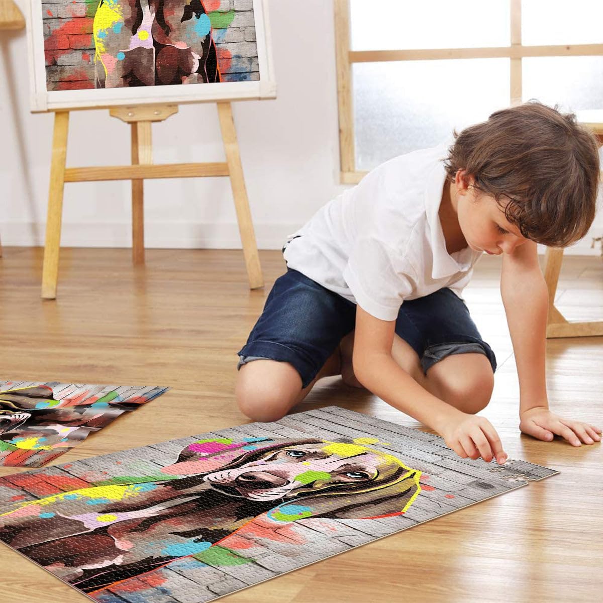 Puzzle da 1000 pezzi per adolescenti Graffiti del cane Weimaraner Il puzzle è confezionato in un sacchetto con coulisse e viene fornito con una bella scatola regalo e un poster regalo a grandezza naturale. Dimensioni finali 38x26cm 【Alta qualità】: Questo puzzle da 1000 pezzi è realizzato in cartone riciclato di alta qualità. Il puzzle adotta una tecnologia avanzata di produzione di puzzle e la carta è più spessa, più resistente e non facile da deformare. 【Design unico】: Utilizziamo una tecnologia di taglio di precisione per garantire che ogni pezzo del puzzle si adatti perfettamente senza polvere. Ogni pezzo del puzzle è stampato con inchiostro antiriflesso e atossico. La guida per le lettere sul retro del puzzle fornisce un ulteriore aiuto e rende il puzzle più facile da risolvere. 【Rilassamento e sollievo dallo stress】: I puzzle artistici sono un modo prezioso per godersi del tempo di qualità a casa. Assemblare un puzzle da 1000 pezzi può migliorare l'umore, potenziare le capacità cognitive e migliorare la memoria a breve termine. 【Supporto】 Se riscontri che al tuo puzzle manca un pezzo, non esitare a contattarci e lo sostituiremo con un puzzle con la stessa immagine senza domande o condizioni.