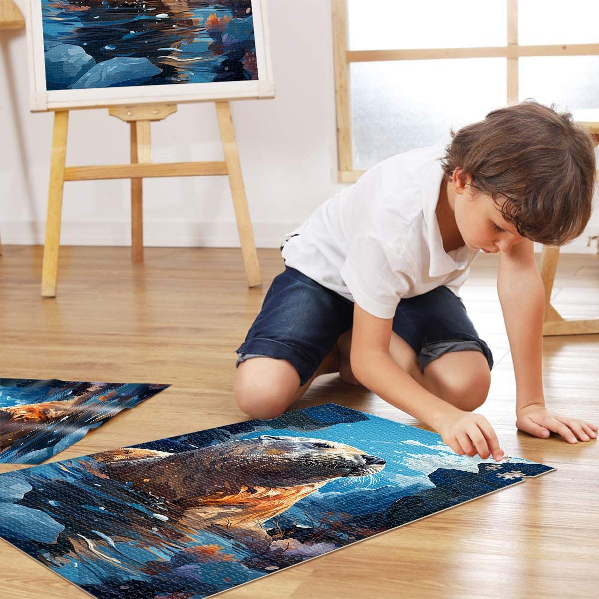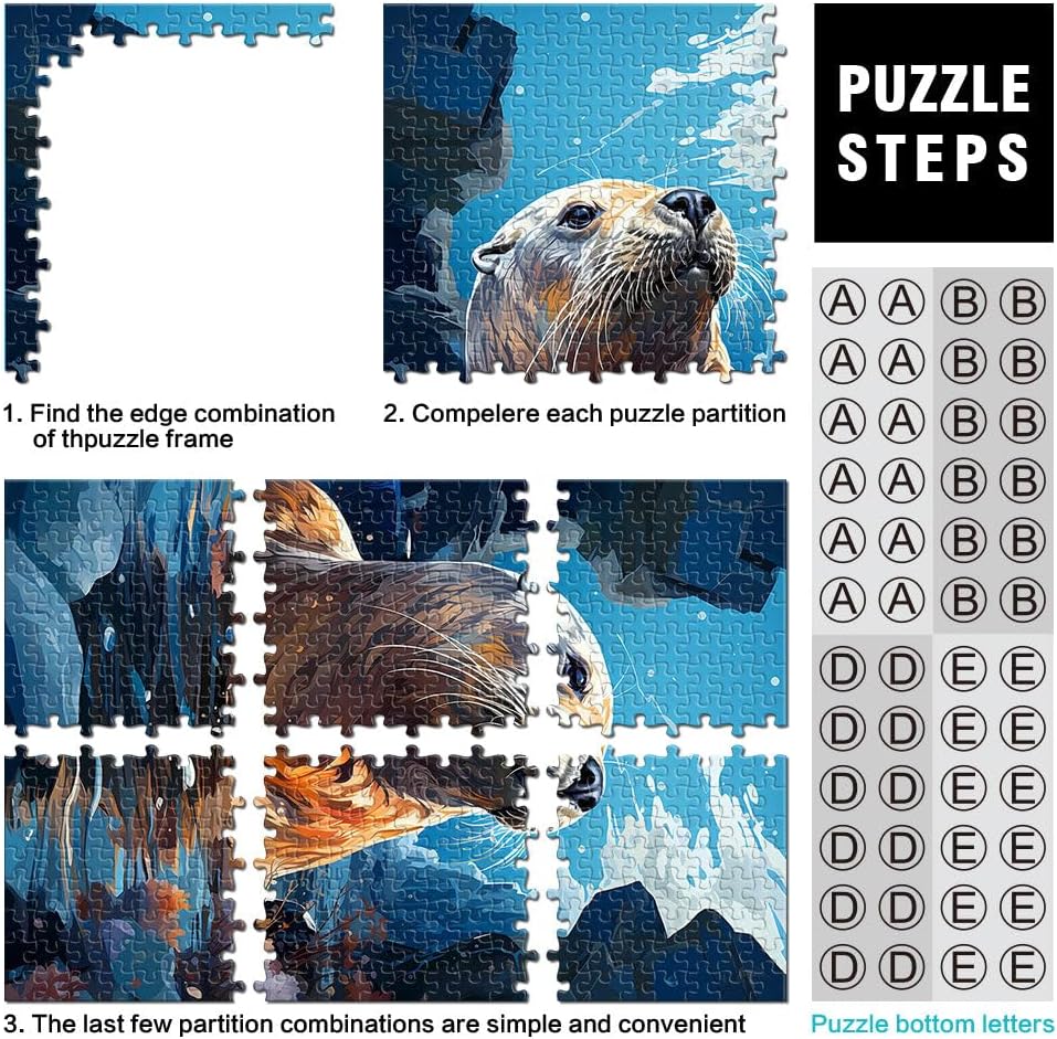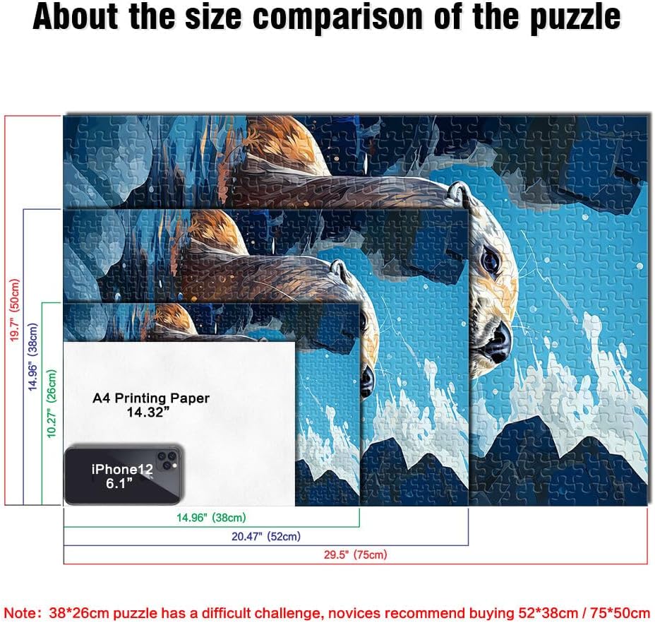 Puzzle da 1000 pezzi per adolescenti lontra marina Fatto di legno per 14+ con pezzi completamente interconnessi di forma casuale Giocattoli da regalo misurare:50x75cm