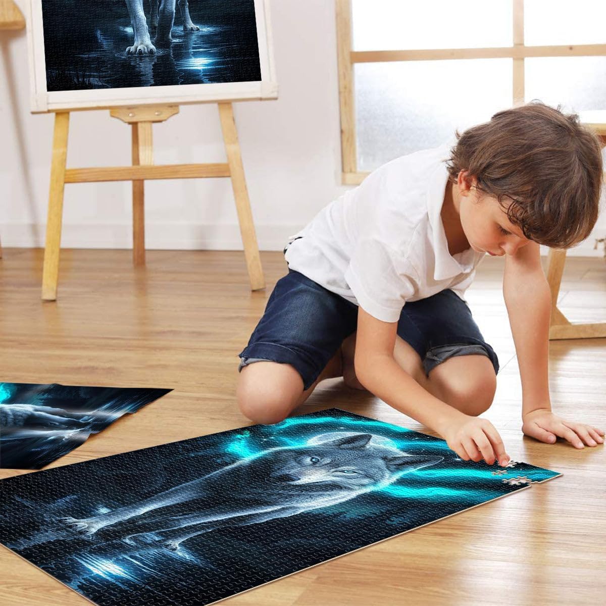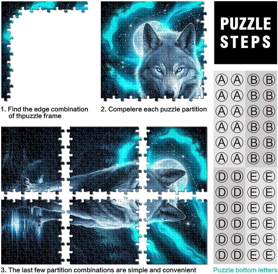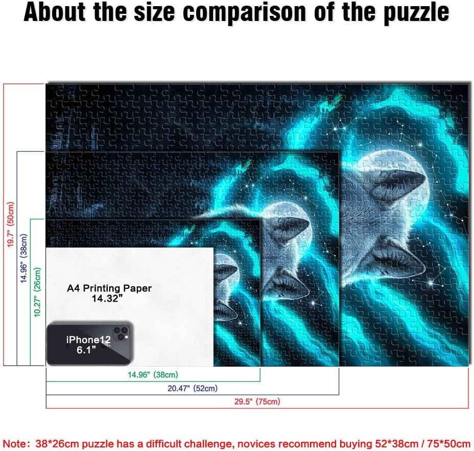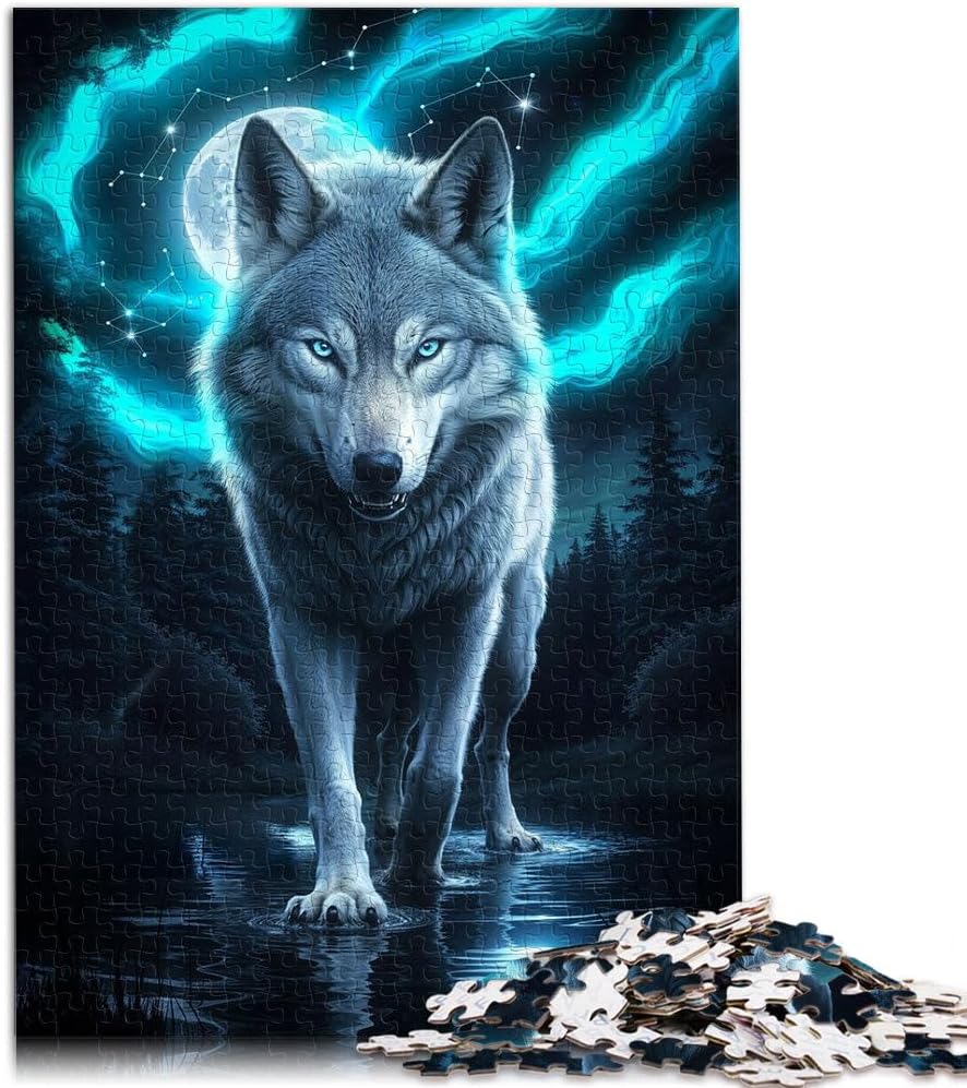 Puzzle da 1000 pezzi per adolescenti Lupo dell'anima Fatto di legno per età 14+ giocattoli educativi per l'apprendimento Regali di compleanno di Natale misurare:50x75cm