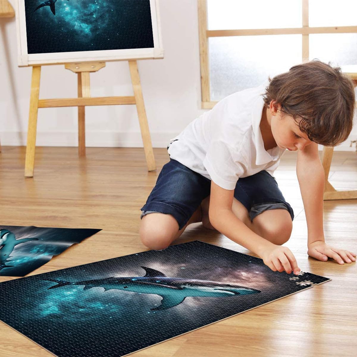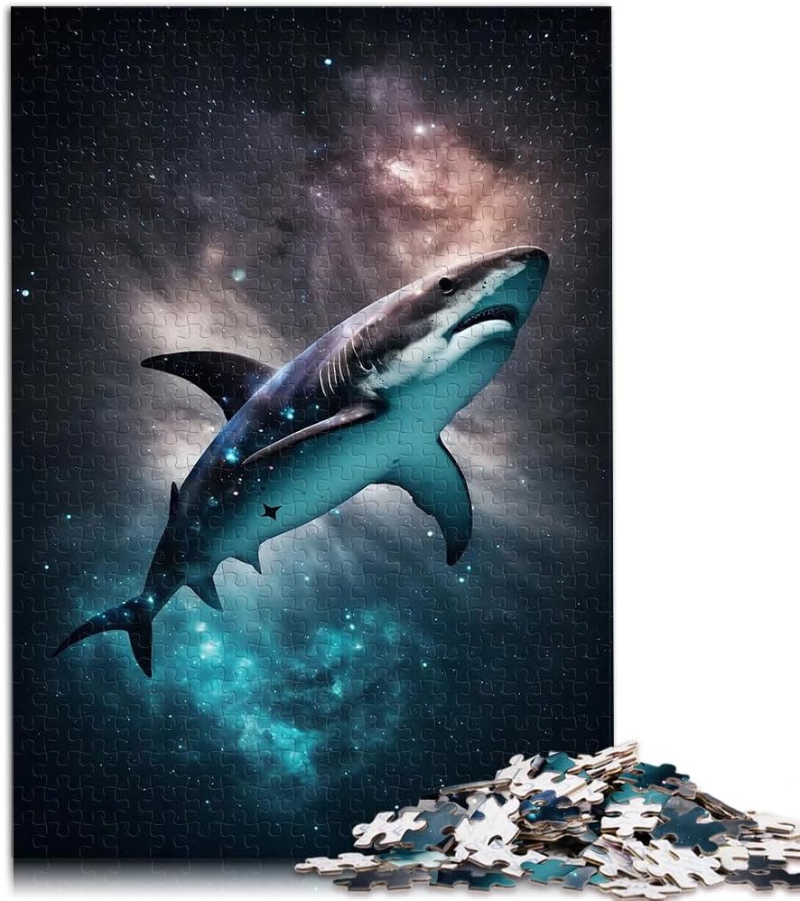 Puzzle da 1000 pezzi per adolescenti Squalo nello spazio Fatto di legno per età 14+ Difficile e impegnativo Decorazioni e regali unici per la casa misurare:50x75cm