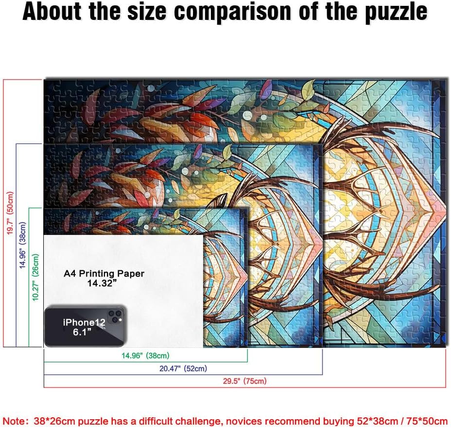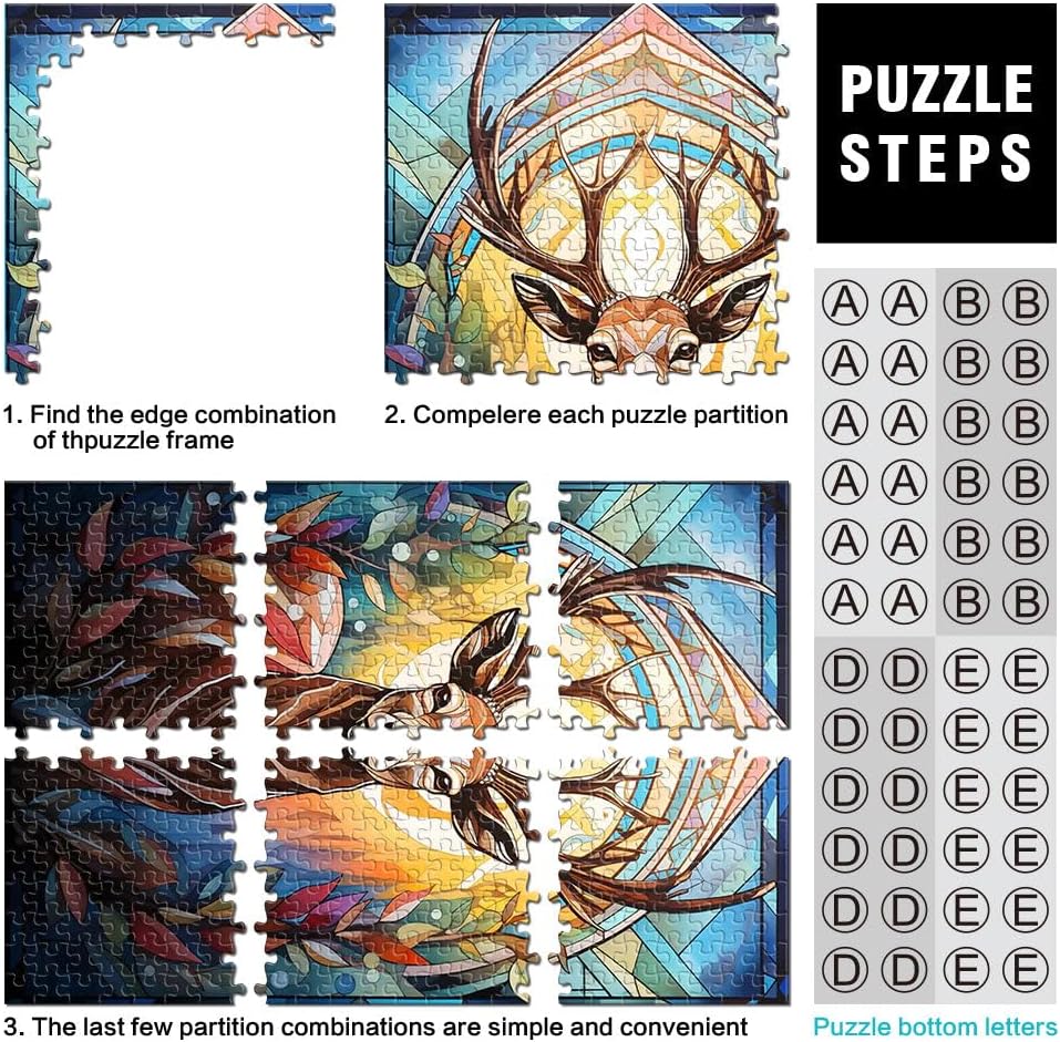 Puzzle da 1000 pezzi per adolescenti Vetrata con cervo Il puzzle è confezionato in un sacchetto con coulisse e viene fornito con una bella scatola regalo e un poster regalo a grandezza naturale. Dimensioni finali 38x52cm 【Materiale di alta qualità】Realizzato in legno riciclabile di alta qualità, atossico, inodore e privo di polvere. La tecnologia di taglio di precisione garantisce che ogni pezzo del puzzle si adatti perfettamente, offrendoti la migliore esperienza. 【Design unico】: Utilizziamo una tecnologia di taglio di precisione per garantire che ogni pezzo del puzzle si adatti perfettamente senza polvere. Ogni pezzo del puzzle è stampato con inchiostro antiriflesso e atossico. La guida per le lettere sul retro del puzzle fornisce un ulteriore aiuto e rende il puzzle più facile da risolvere. 【Rilassamento e sollievo dallo stress】: I puzzle artistici sono un modo prezioso per godersi del tempo di qualità a casa. Assemblare un puzzle da 1000 pezzi può migliorare l'umore, potenziare le capacità cognitive e migliorare la memoria a breve termine. 【Supporto】 Se riscontri che al tuo puzzle manca un pezzo, non esitare a contattarci e lo sostituiremo con un puzzle con la stessa immagine senza domande o condizioni.