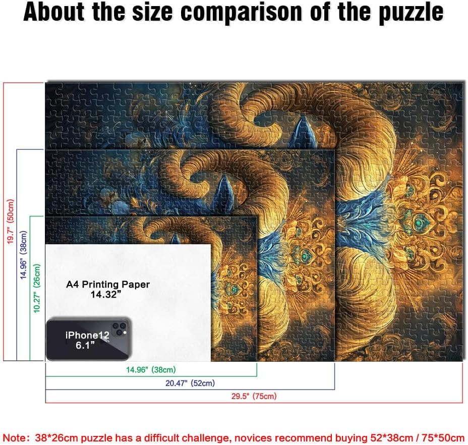 Puzzle da 1000 pezzi per adulti arte della testa di pecora Fatto di legno per età 14+ Giochi di relax Regali unici per compleanno e Natale misurare:50x75cm