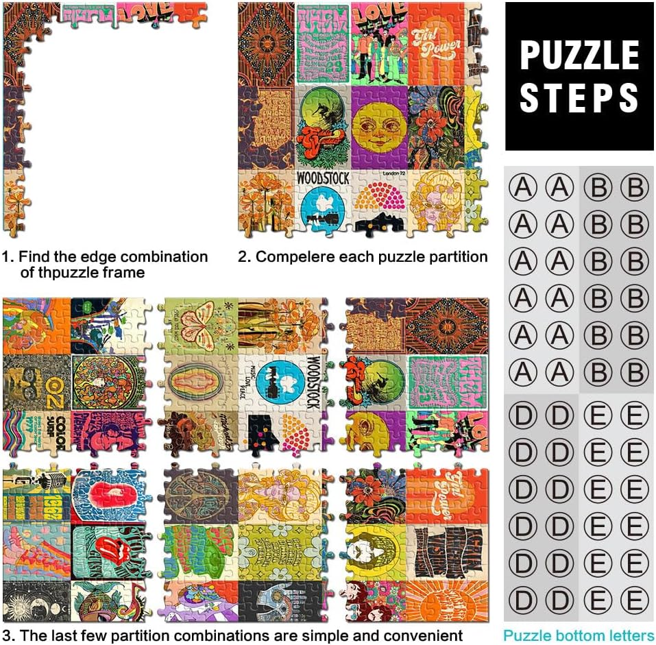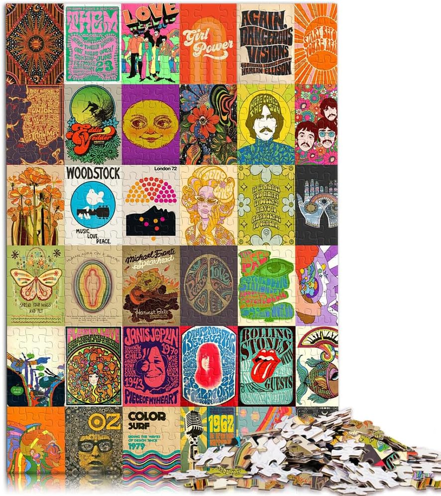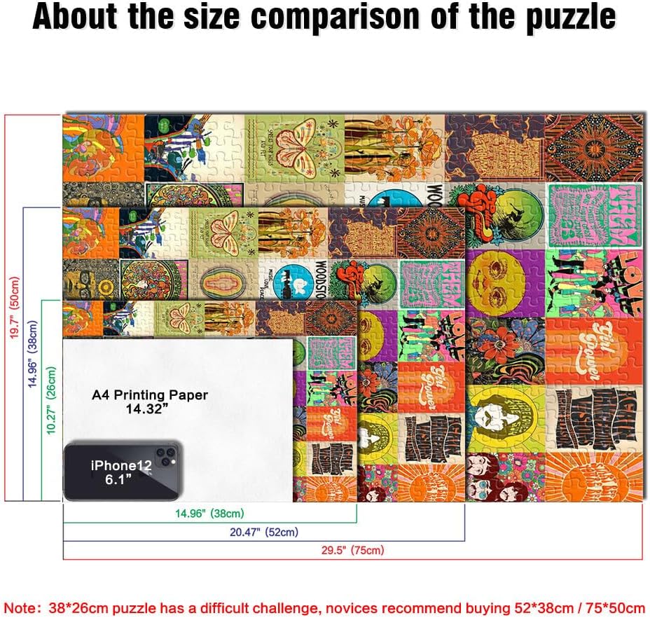 Puzzle da 1000 pezzi per adulti arte patchwork hippie Fatto di legno per 14+ per la decorazione della casa Idee regalo misurare:50x75cm