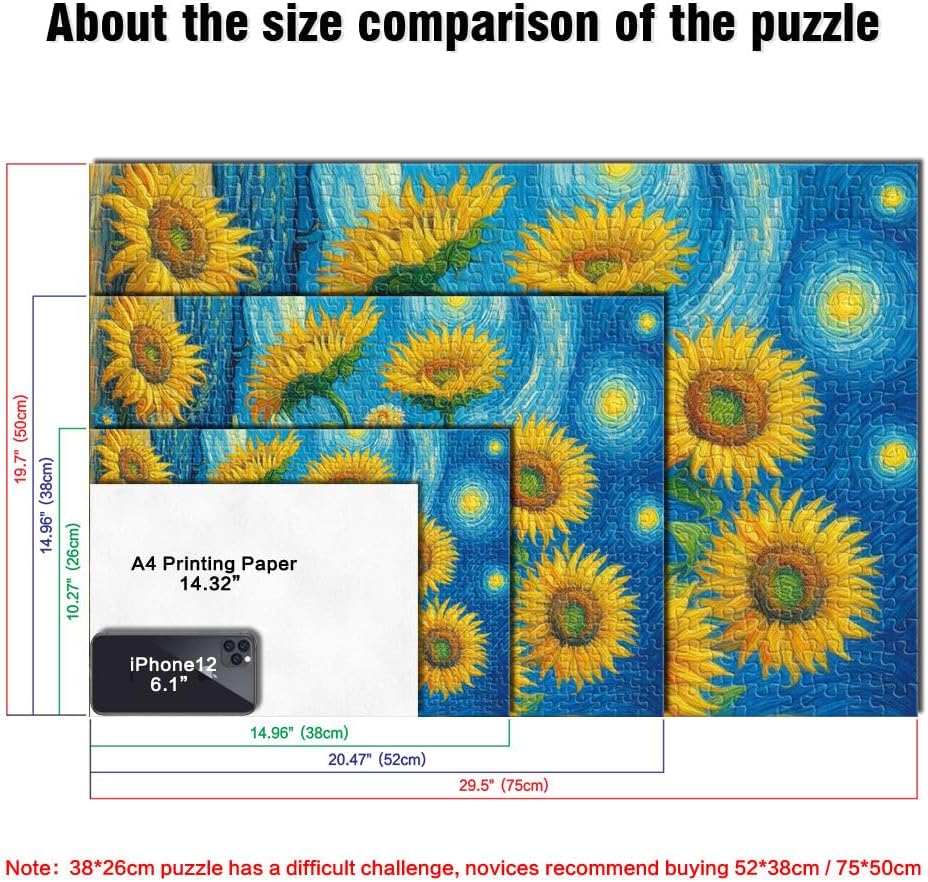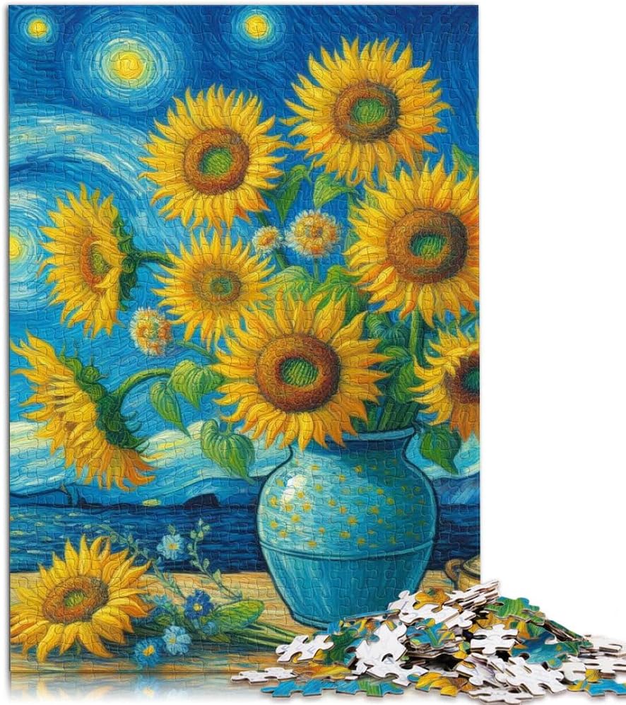 Puzzle da 1000 pezzi per adulti bellissimo girasole Fatto di legno per età pari o superiore a 14 anni Sfida di gioco giocattolo educativo Ottimi regali e giocattoli misurare:50x75cm