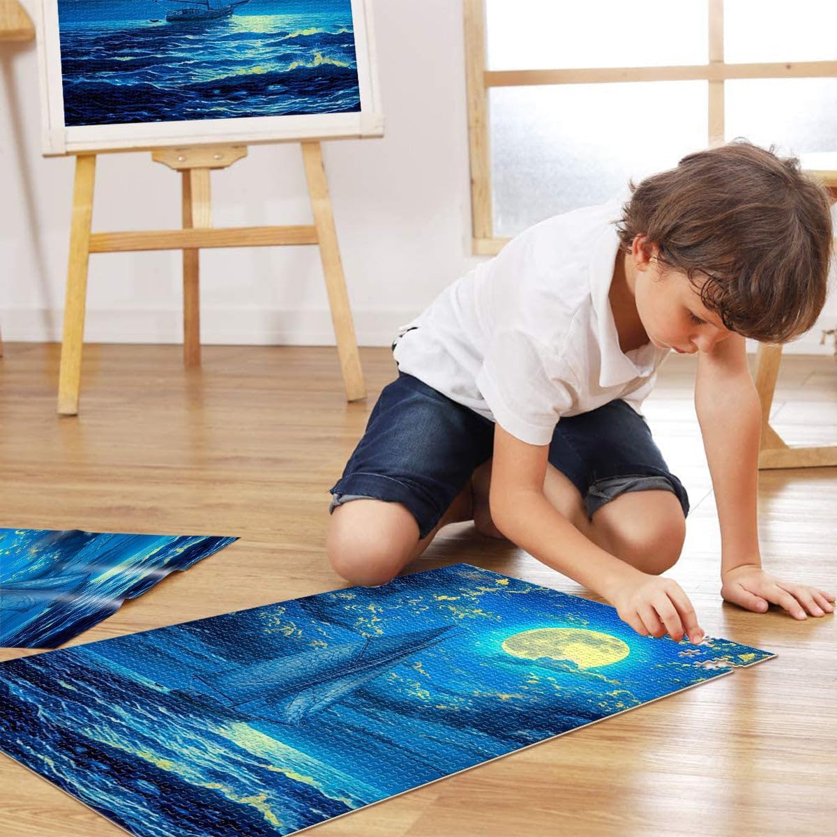 Puzzle da 1000 pezzi per adulti dipinto di tramonto in barca a vela Adatto a persone dai 14 anni in su Giocattoli educativi per l'apprendimento Giochi per famiglie regalo di compleanno