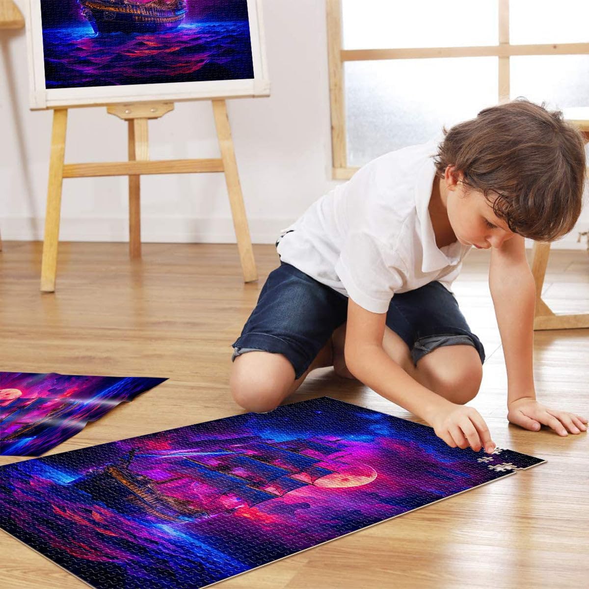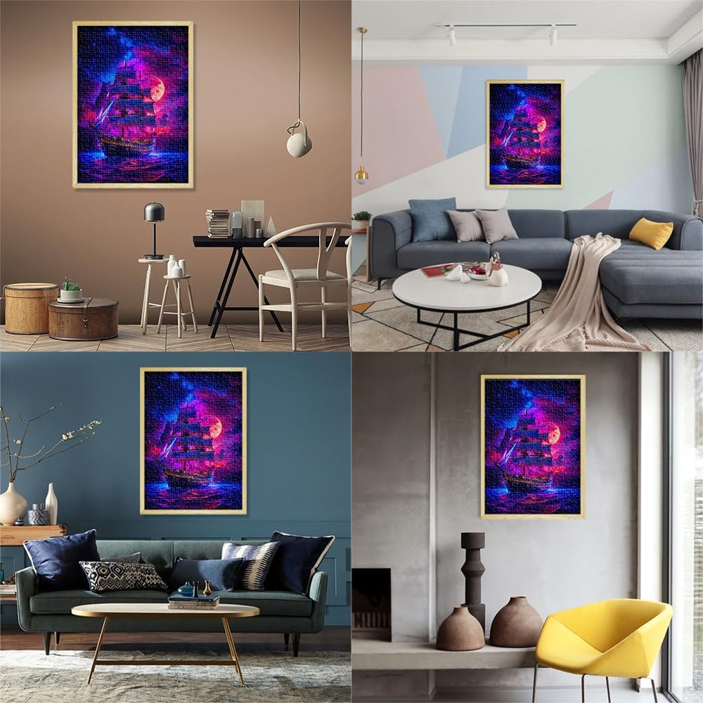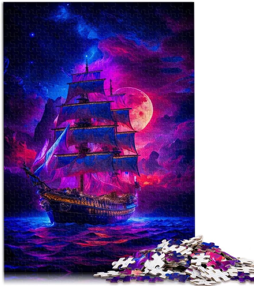 Puzzle da 1000 pezzi per adulti dipinto di tramonto in barca a vela Fatto di legno per età pari o superiore a 14 anni Antistress Sfida difficile Regalo per i compleanni misurare:50x75cm