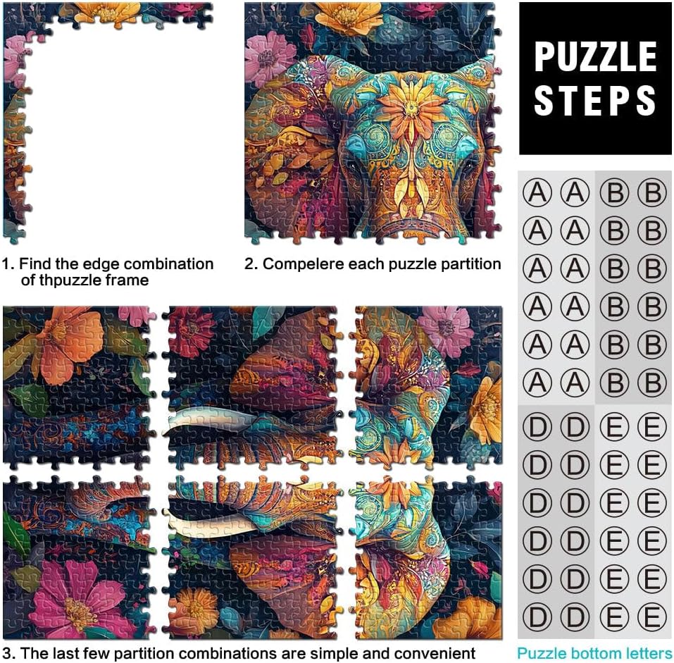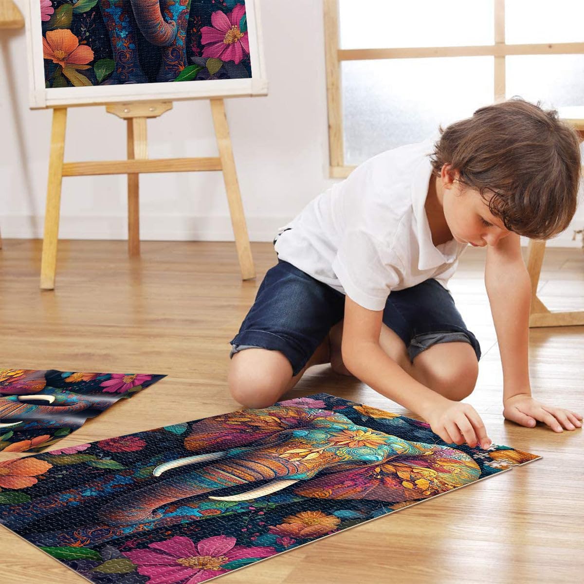 Puzzle da 1000 pezzi per adulti e adolescenti arte dell'elefante~ Fatto di legno Adatto a partire dai 14 anni Attività per famiglie regalo di compleanno misurare:50x75cm