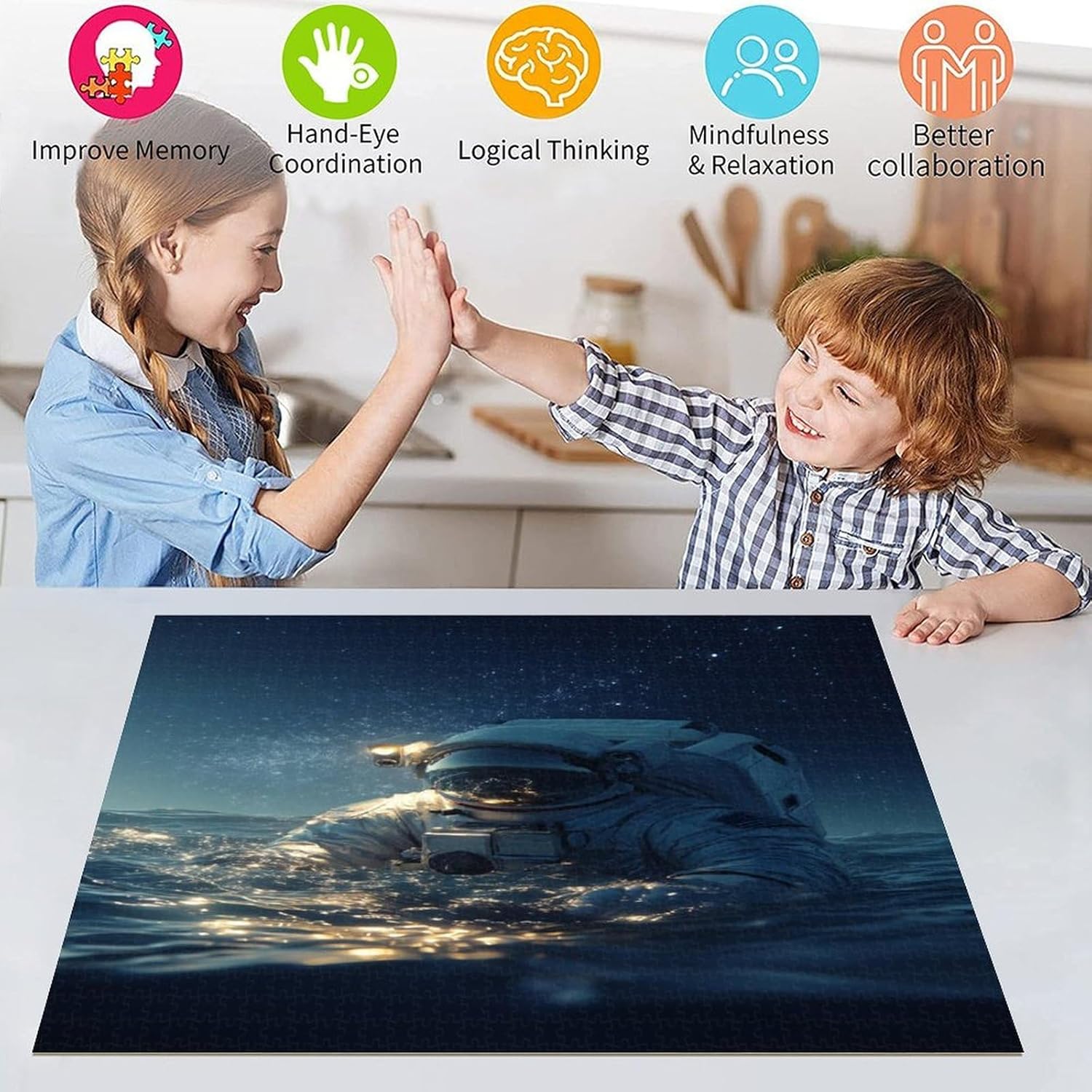 Puzzle da 1000 pezzi per adulti e adolescenti, astronauta, giocattoli educativi per l'apprendimento, regali di compleanno unici per età 14+ 26X38CM