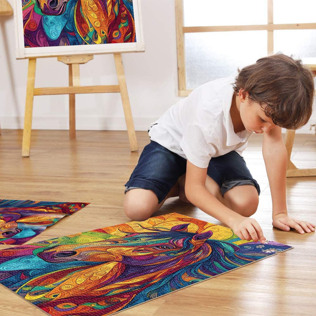 Puzzle da 1000 pezzi per adulti e adolescenti avatar artistico cavallo Fatto di legno Adatto a partire dai 14 anni Gioco intellettuale Regalo divertente per la famiglia misurare:50x75cm
