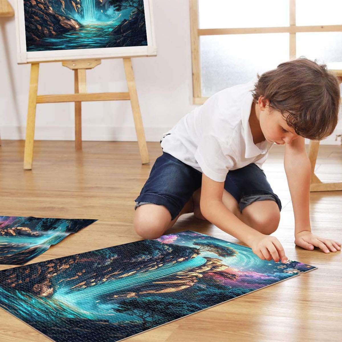 Puzzle da 1000 pezzi per adulti e adolescenti Cascata mistica Fatto di legno Adatto a partire dai 14 anni Sfida di gioco educativo giocattolo Ottimo regalo per i videogiochi misurare:50x75cm
