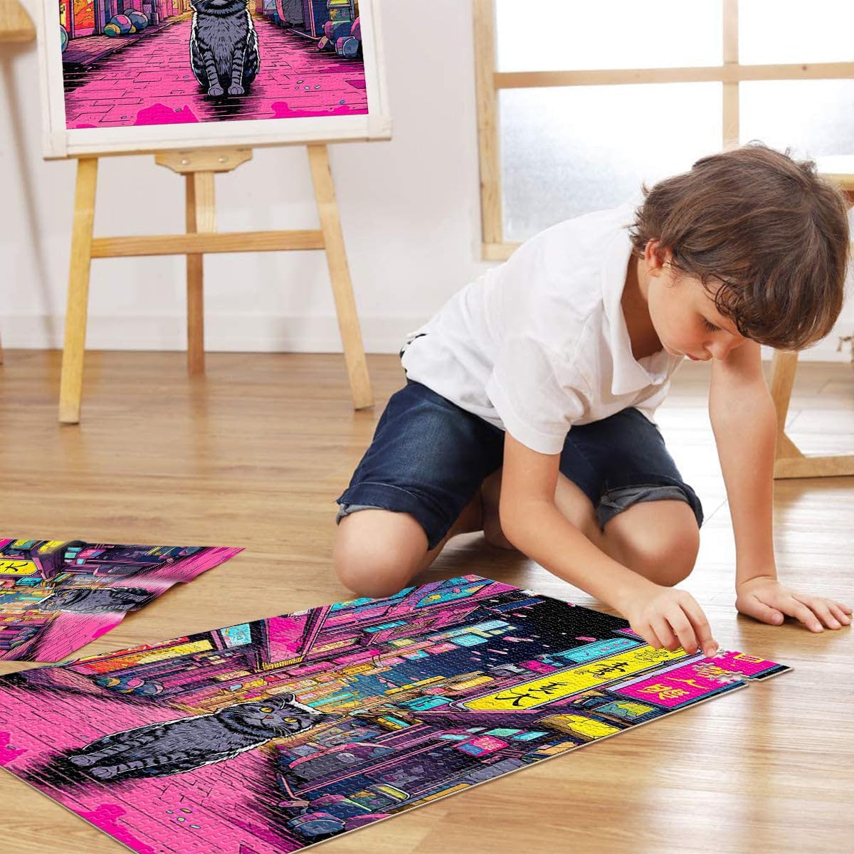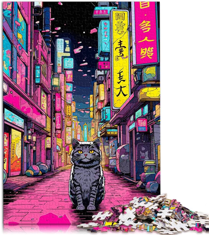 Puzzle da 1000 pezzi per adulti e adolescenti città dei gatti in Giappone Fatto di legno Adatto a partire dai 14 anni Giocare con i giocattoli perché è ideale come regalo per tutta la famiglia
