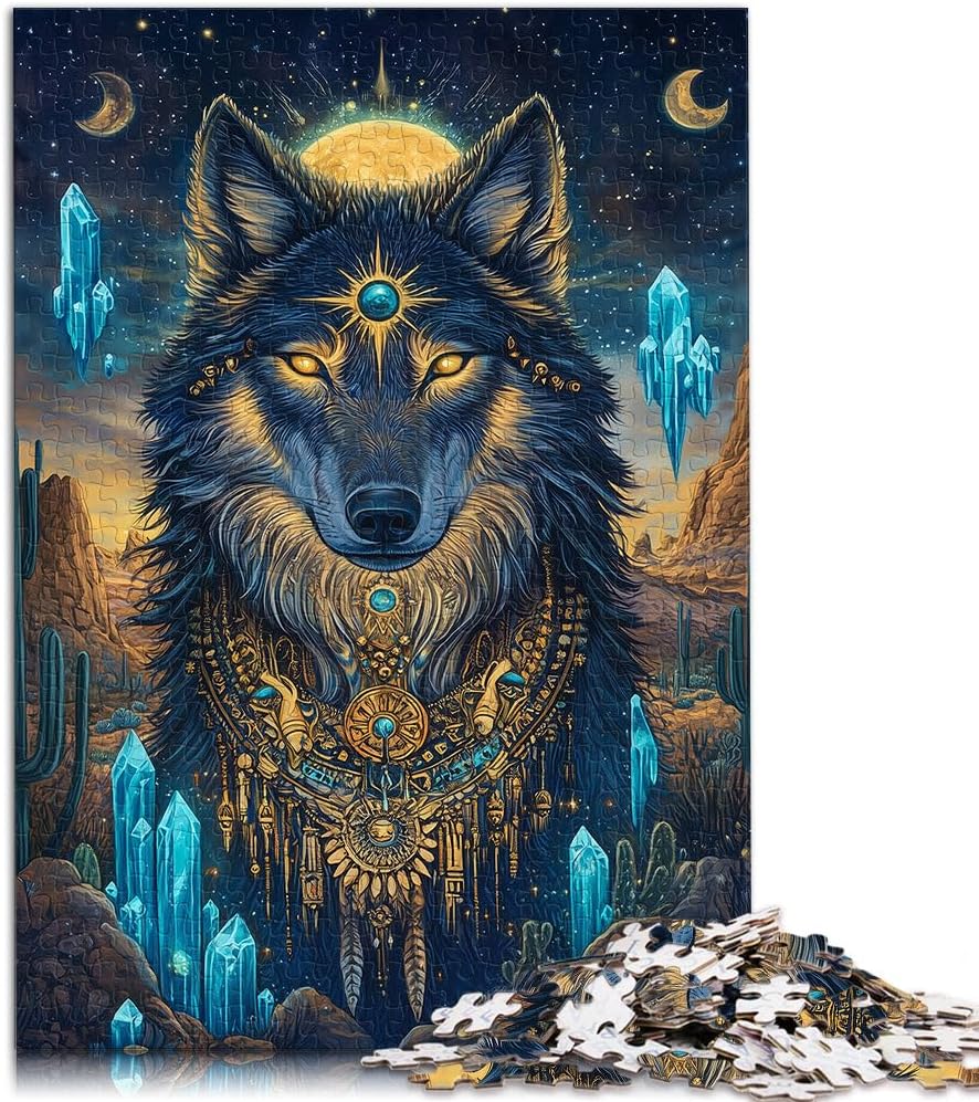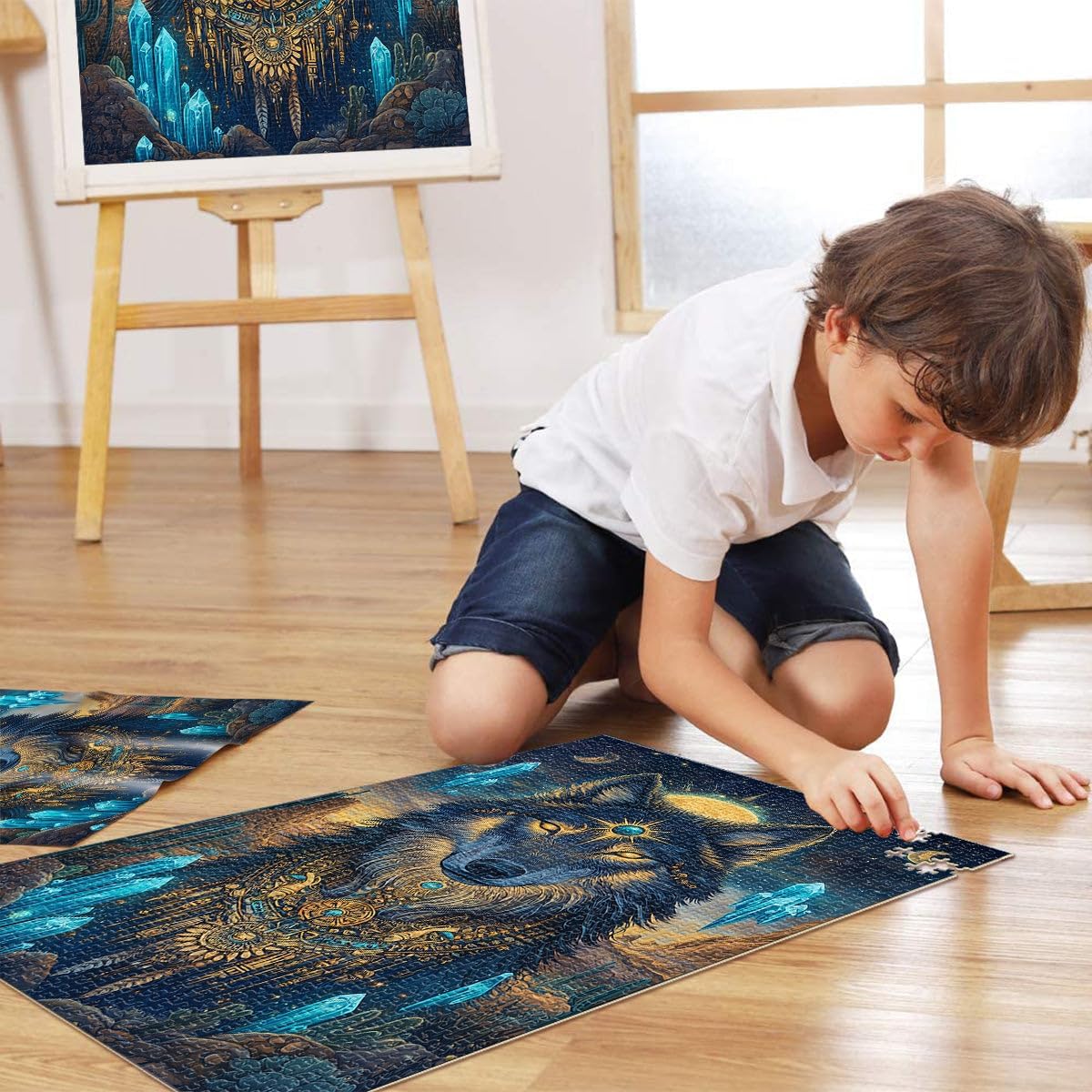 Puzzle da 1000 pezzi per adulti e adolescenti Fantasia del lupo Fatto di legno Adatto a partire dai 14 anni Gioco educativo per famiglie apprendimento educativo regalo misurare:50x75cm