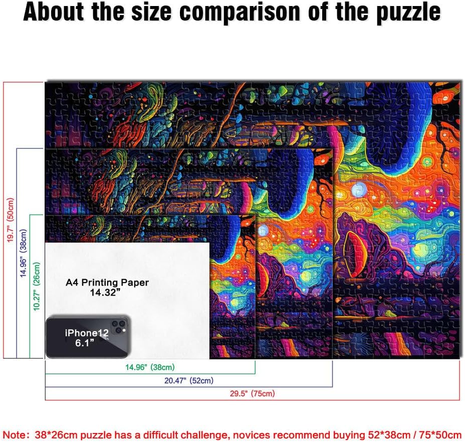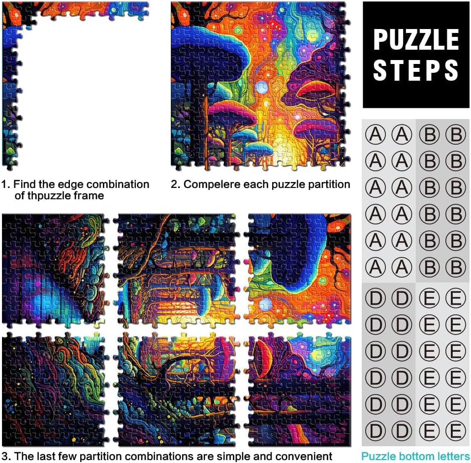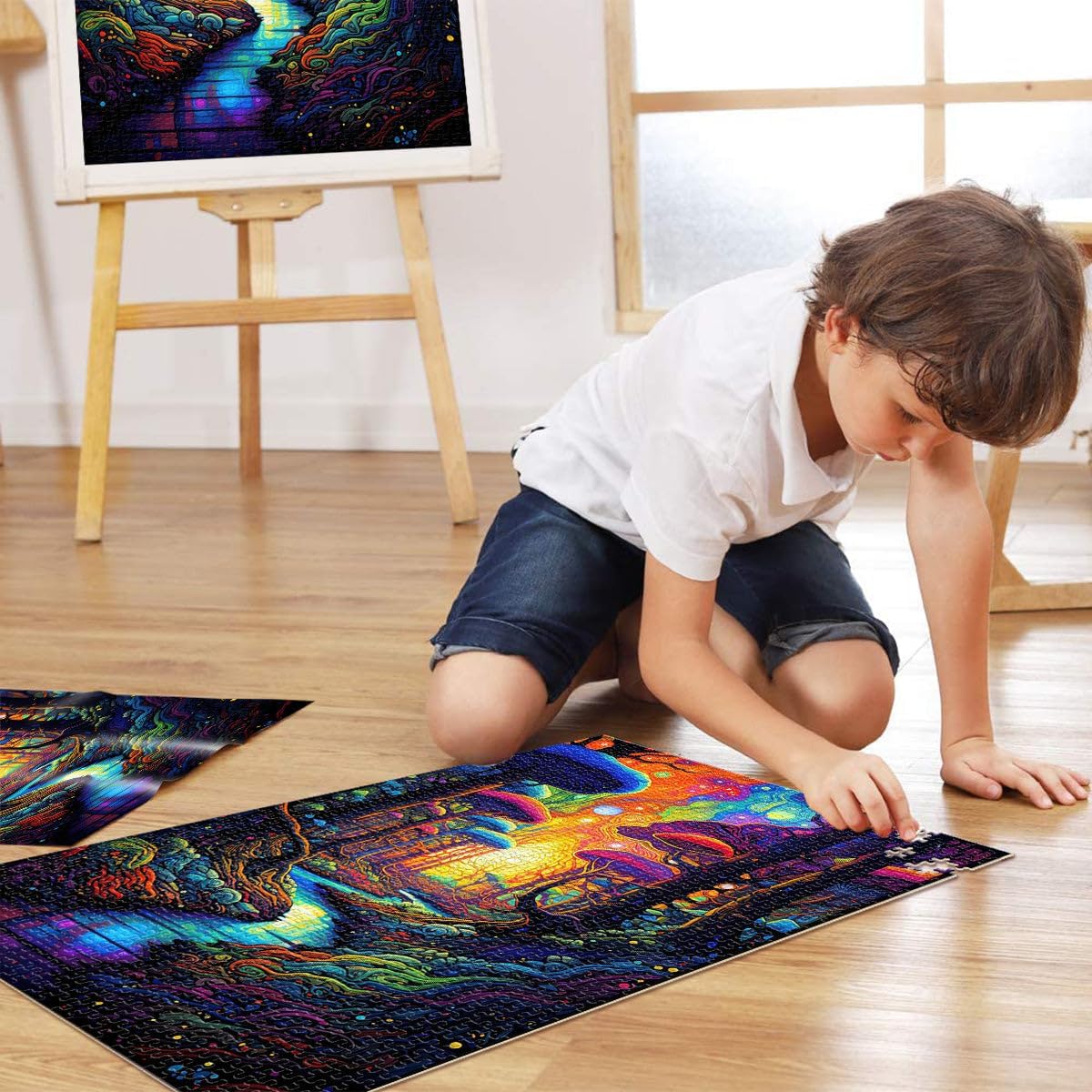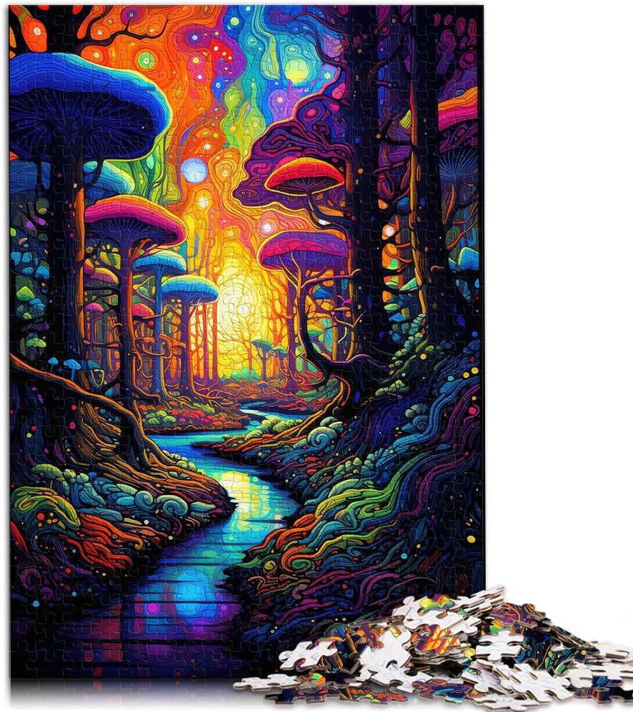 Puzzle da 1000 pezzi per adulti e adolescenti Foresta psichedelica Fatto di legno Adatto a partire dai 14 anni Decorazione artistica per la casa grande regalo misurare:50x75cm