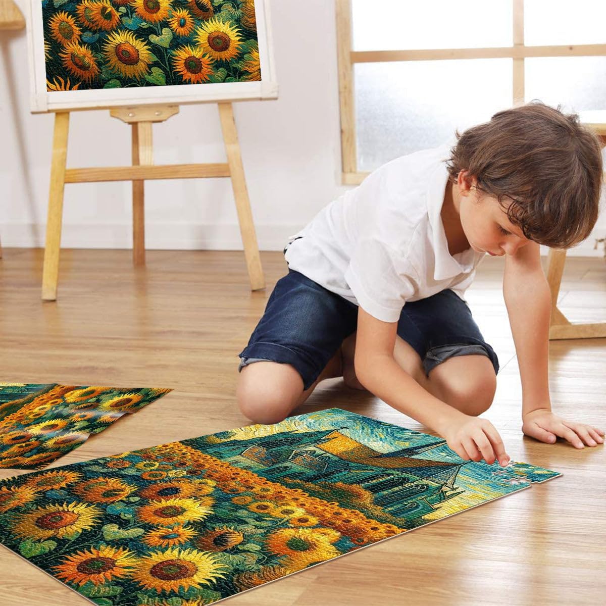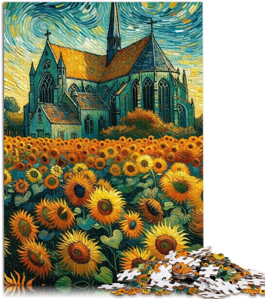 Puzzle da 1000 pezzi per adulti e adolescenti Girasoli sotto casa Fatto di legno per età 14+ Decorazione della casa Ottimi regali e giocattoli misurare:50x75cm