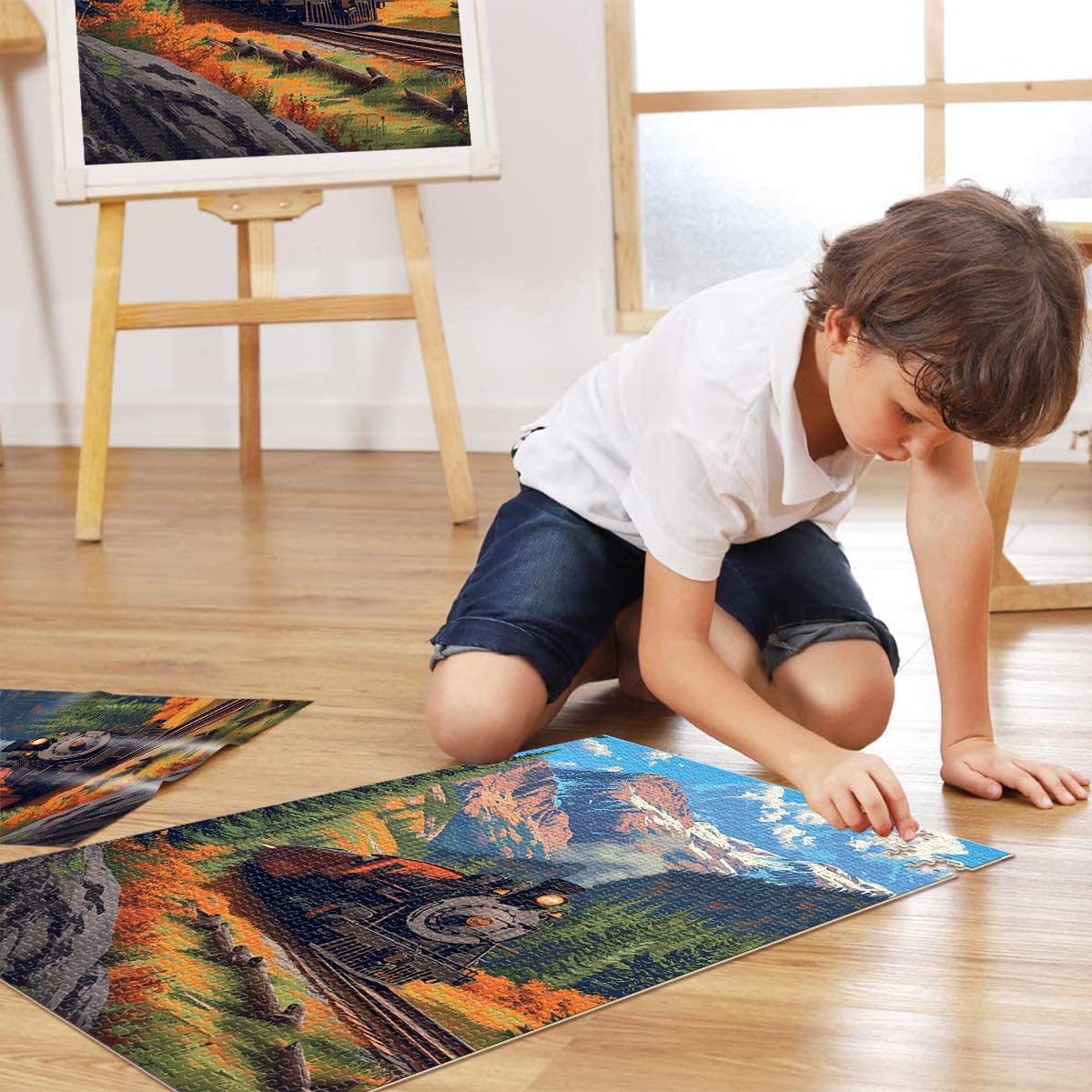 Puzzle da 1000 pezzi per adulti e adolescenti Treno locomotiva retrò Fatto di legno Adatto a partire dai 14 anni Divertimento in famiglia È ideale come regalo per tutta la famiglia