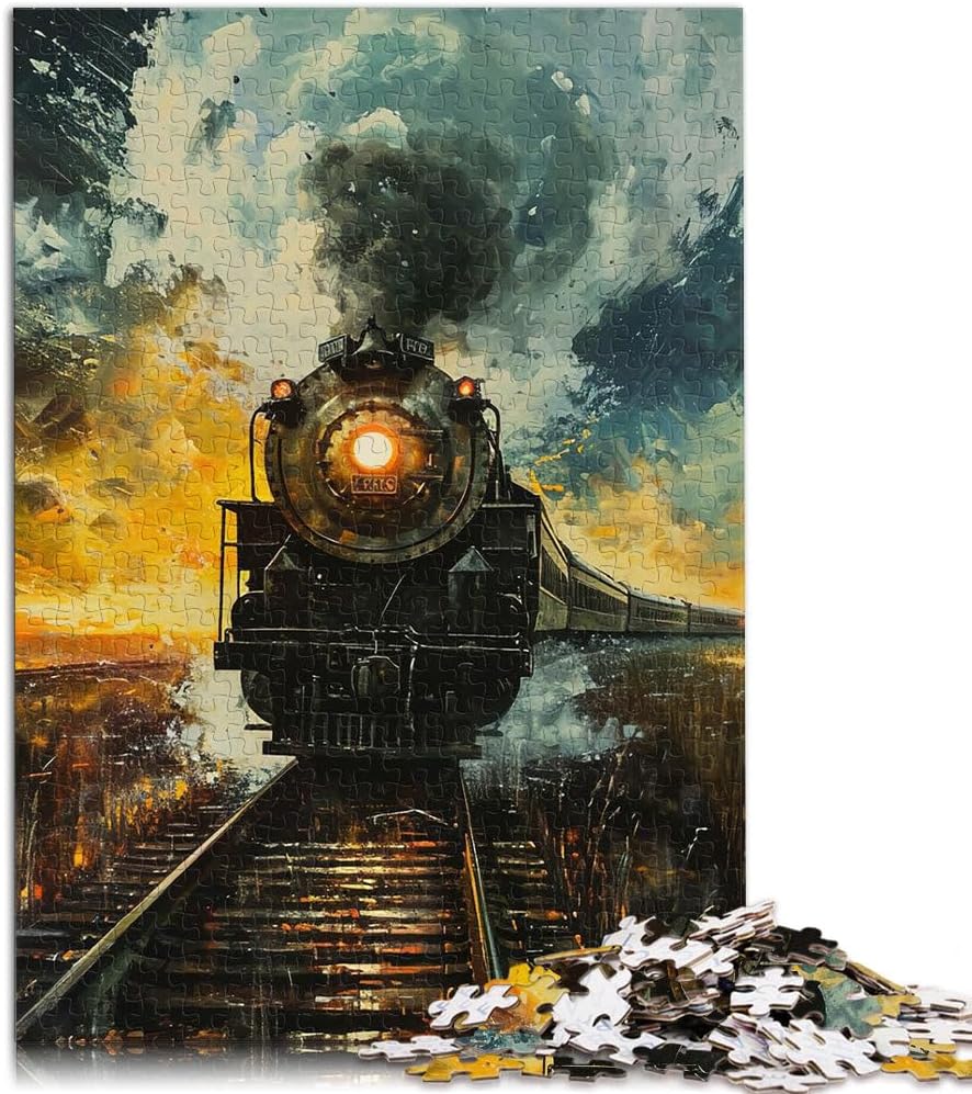 Puzzle da 1000 pezzi per adulti e adolescenti Treno locomotiva retrò Fatto di legno Adatto a persone dai 14 anni in su Rompicapo Giochi per famiglie, regali di Natale e compleanno misurare:50x75cm