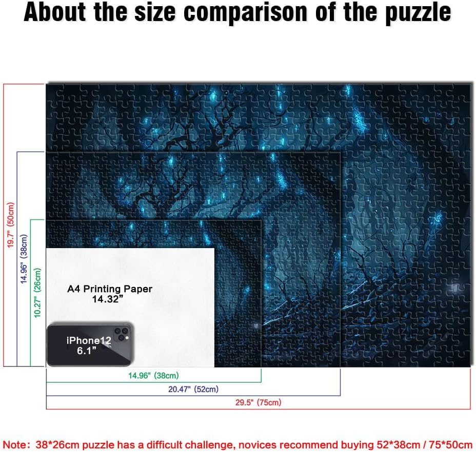 Puzzle da 1000 pezzi per adulti Foresta di fantasia oscura Il puzzle è confezionato in un sacchetto con coulisse e viene fornito con una bella scatola regalo e un poster regalo a grandezza naturale. Dimensioni finali 38x52cm 【Materiale di alta qualità】Realizzato in legno riciclabile di alta qualità, atossico, inodore e privo di polvere. La tecnologia di taglio di precisione garantisce che ogni pezzo del puzzle si adatti perfettamente, offrendoti la migliore esperienza. 【Design unico】: Utilizziamo una tecnologia di taglio di precisione per garantire che ogni pezzo del puzzle si adatti perfettamente senza polvere. Ogni pezzo del puzzle è stampato con inchiostro antiriflesso e atossico. La guida per le lettere sul retro del puzzle fornisce un ulteriore aiuto e rende il puzzle più facile da risolvere. 【Rilassamento e sollievo dallo stress】: I puzzle artistici sono un modo prezioso per godersi del tempo di qualità a casa. Assemblare un puzzle da 1000 pezzi può migliorare l'umore, potenziare le capacità cognitive e migliorare la memoria a breve termine. 【Supporto】 Se riscontri che al tuo puzzle manca un pezzo, non esitare a contattarci e lo sostituiremo con un puzzle con la stessa immagine senza domande o condizioni.