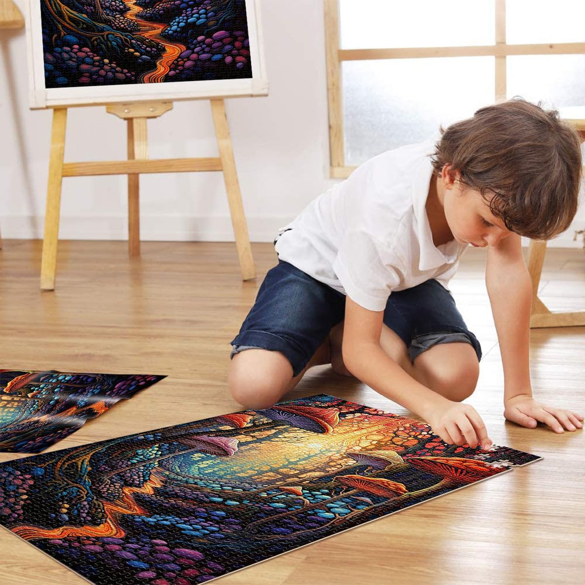 Puzzle da 1000 pezzi per adulti Foresta psichedelica Fatto di legno Adatto a partire dai 14 anni Giocattoli educativi per l'apprendimento Giochi per famiglie regalo di compleanno misurare:50x75cm