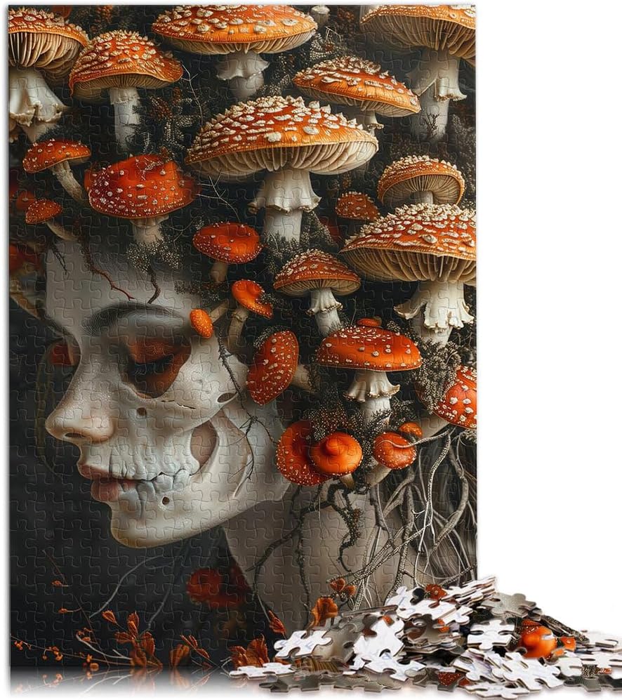 Puzzle da 1000 pezzi per adulti Funghi scheletro donna Fatto di legno da 14 anni in su Giocattoli educativi Regali di gioco di Natale misurare:50x75cm