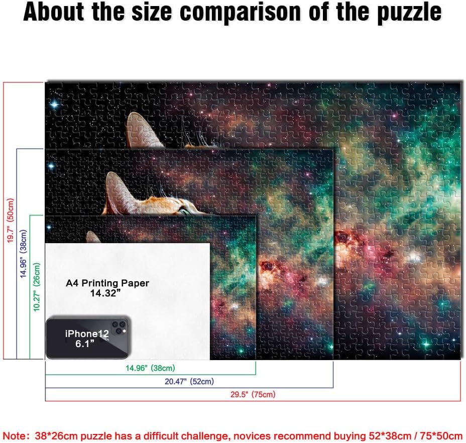 Puzzle da 1000 pezzi per adulti Gatto dello spazio cosmico Il puzzle è confezionato in un sacchetto con coulisse e viene fornito con una bella scatola regalo e un poster regalo a grandezza naturale. Dimensioni finali 38x52cm 【Materiale di alta qualità】Realizzato in legno riciclabile di alta qualità, atossico, inodore e privo di polvere. La tecnologia di taglio di precisione garantisce che ogni pezzo del puzzle si adatti perfettamente, offrendoti la migliore esperienza. 【Design unico】: Utilizziamo una tecnologia di taglio di precisione per garantire che ogni pezzo del puzzle si adatti perfettamente senza polvere. Ogni pezzo del puzzle è stampato con inchiostro antiriflesso e atossico. La guida per le lettere sul retro del puzzle fornisce un ulteriore aiuto e rende il puzzle più facile da risolvere. 【Rilassamento e sollievo dallo stress】: I puzzle artistici sono un modo prezioso per godersi del tempo di qualità a casa. Assemblare un puzzle da 1000 pezzi può migliorare l'umore, potenziare le capacità cognitive e migliorare la memoria a breve termine. 【Supporto】 Se riscontri che al tuo puzzle manca un pezzo, non esitare a contattarci e lo sostituiremo con un puzzle con la stessa immagine senza domande o condizioni.