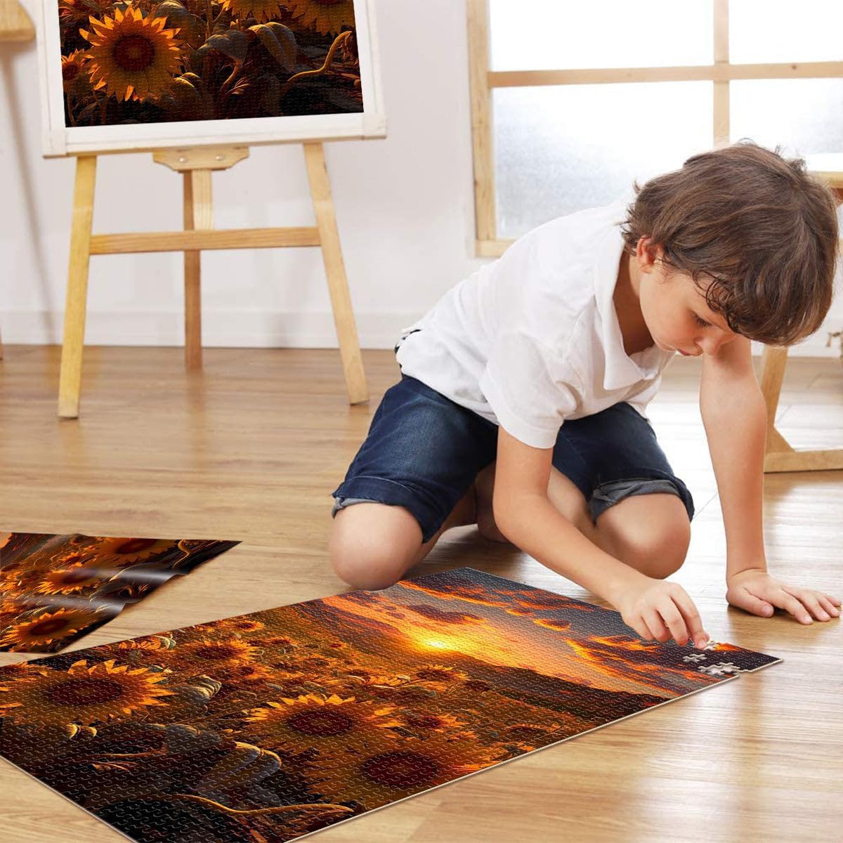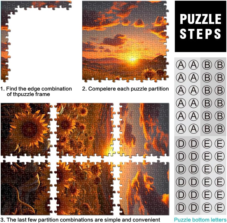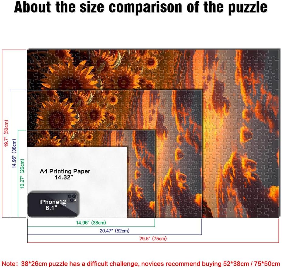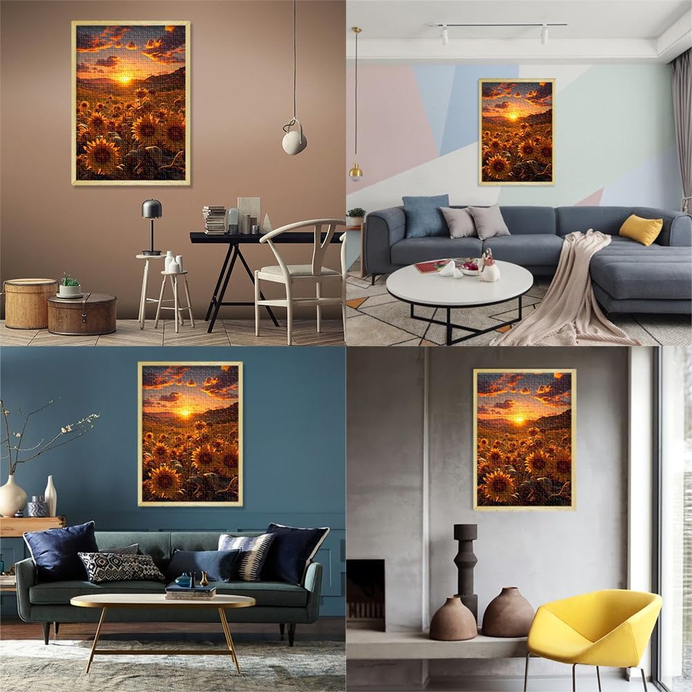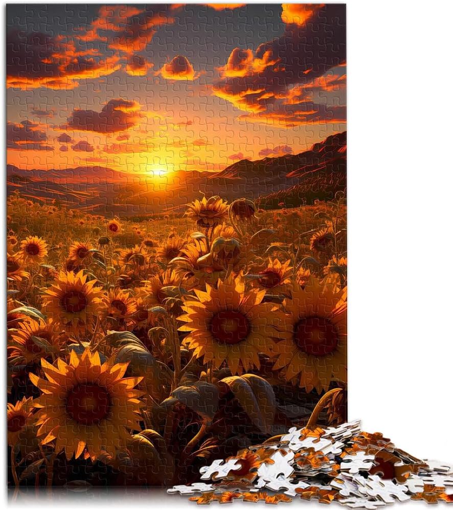 Puzzle da 1000 pezzi per adulti girasole al tramonto Fatto di legno Adatto a partire dai 14 anni apprendimento educativo Grande regalo misurare:50x75cm