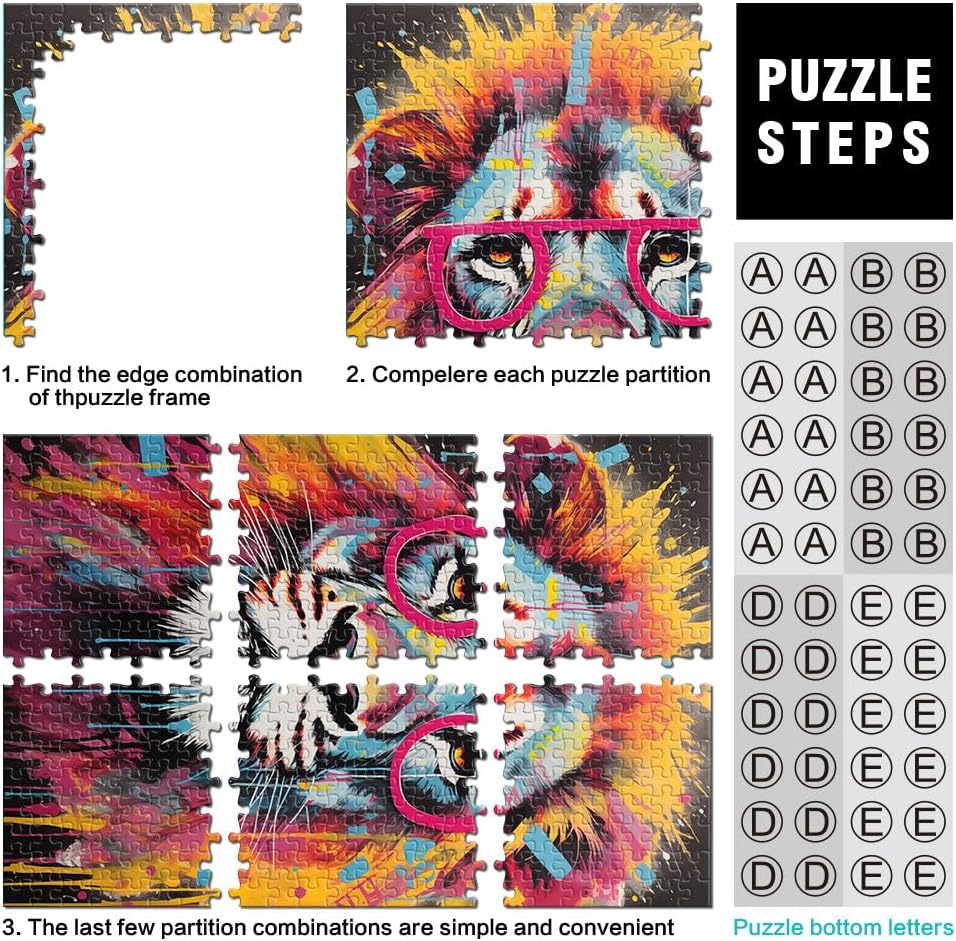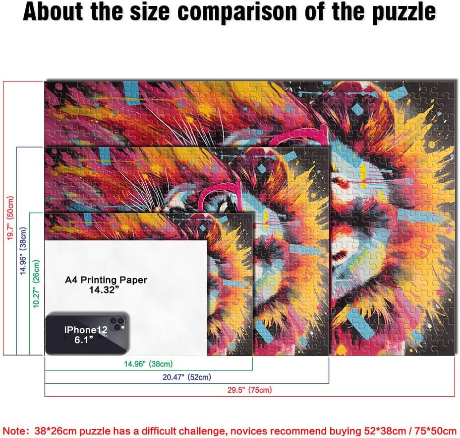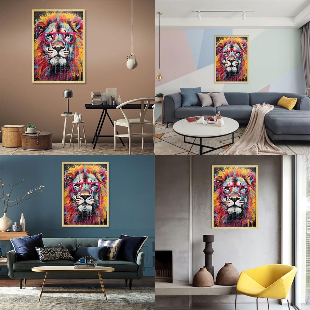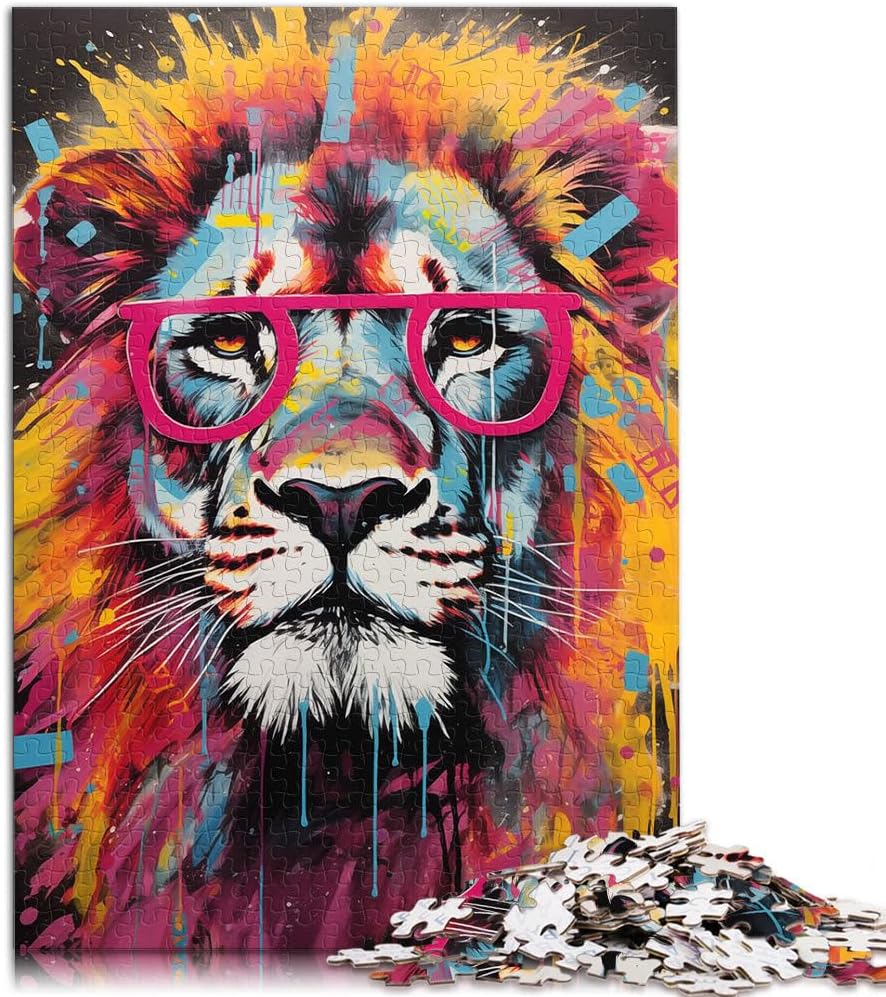 Puzzle da 1000 pezzi per adulti Graffiti psicodelici del leone Fatto di legno per età 14+ Assemblaggio del modello Giocattoli da regalo misurare:50x75cm