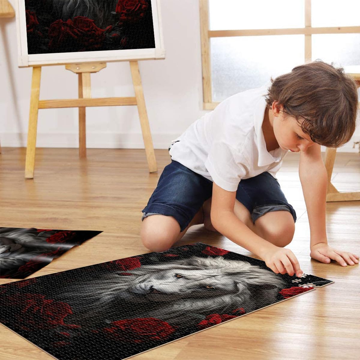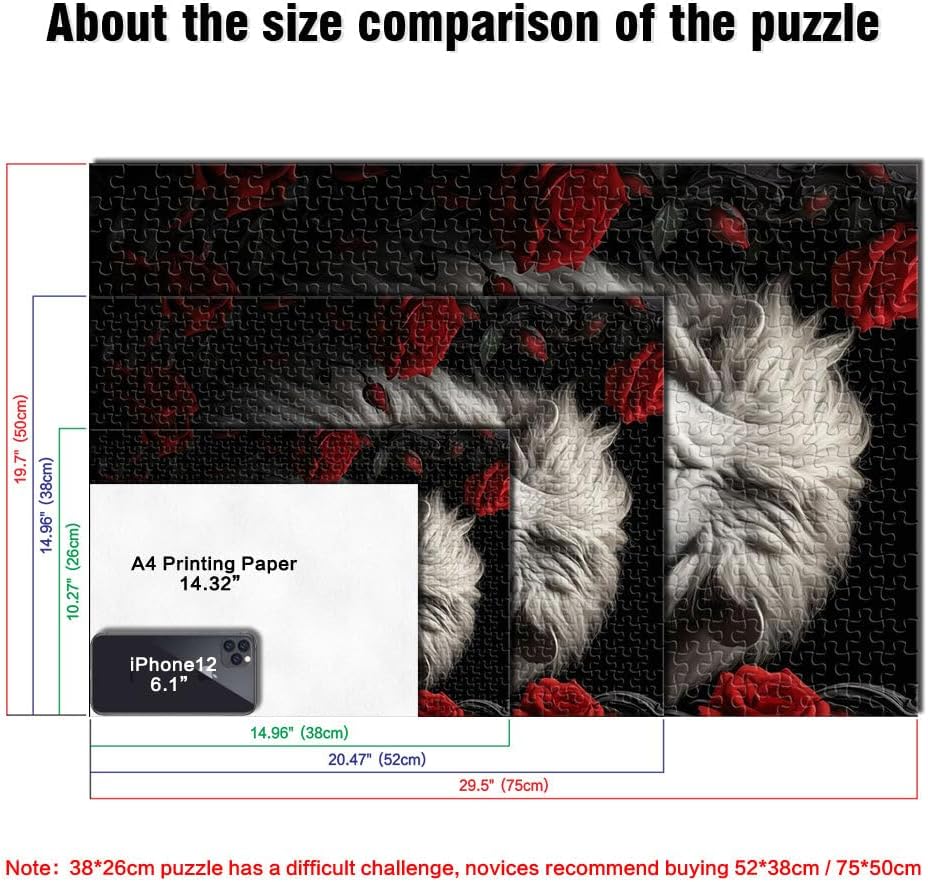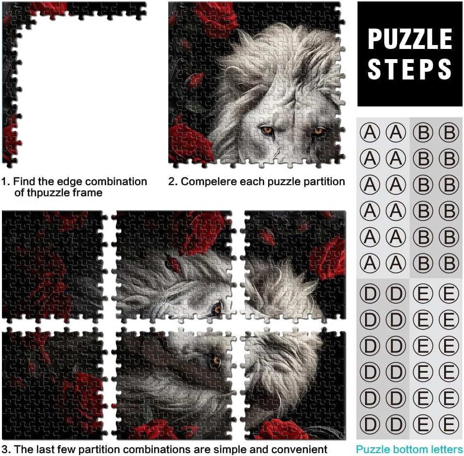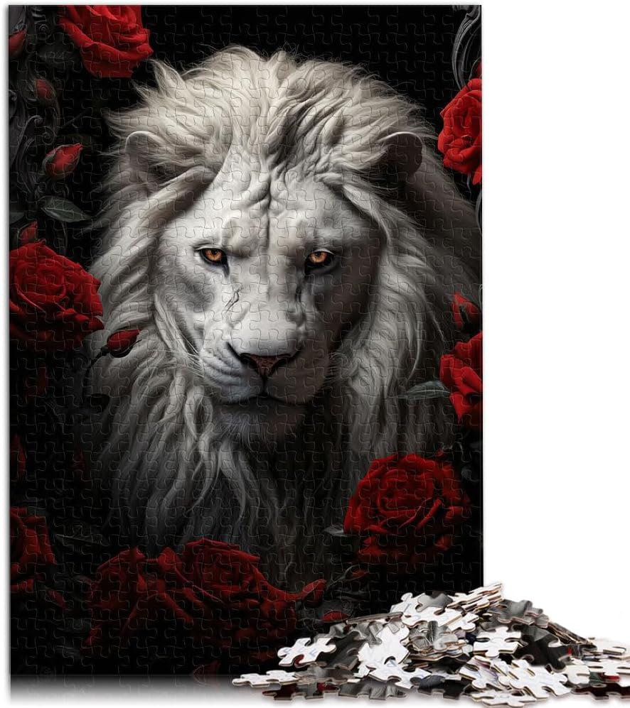 Puzzle da 1000 pezzi per adulti il leone bianco Fatto di legno da 14 anni in su sfida educativa Attività divertenti a casa, regali di compleanno, regali di viaggio misurare:50x75cm
