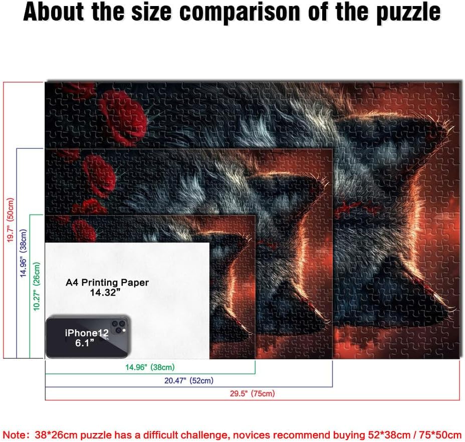 Puzzle da 1000 pezzi per adulti lupo nero sanguinante Fatto di legno Adatto a partire dai 14 anni Giochi di famiglia offerte come regali per tutta la famiglia misurare:50x75cm