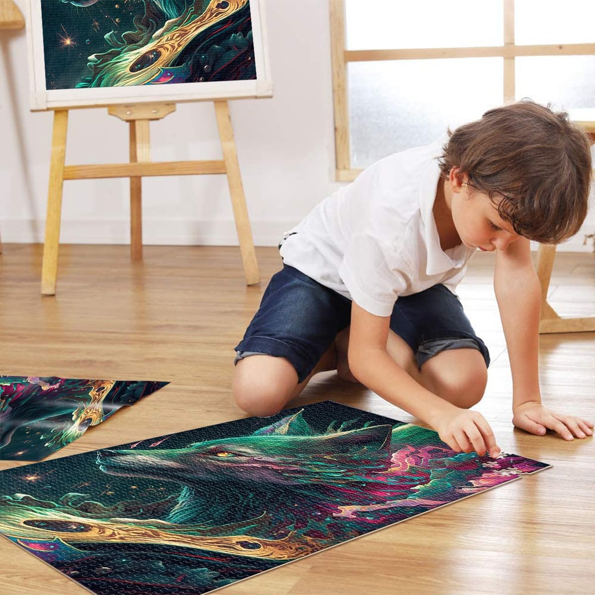 Puzzle da 1000 pezzi per adulti Lupo Onirico Fatto di legno Adatto a partire dai 14 anni Regali per la decorazione della casa Regali unici per compleanno e Natale misurare:50x75cm