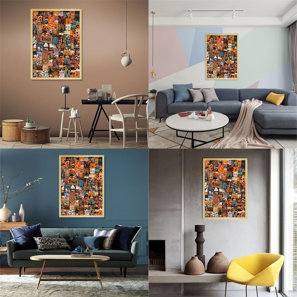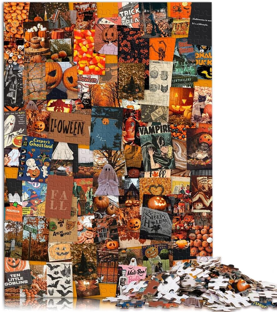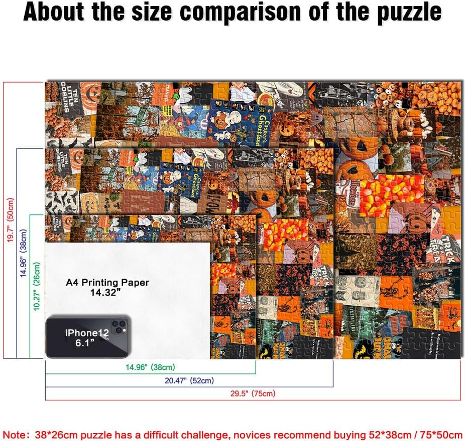 Puzzle da 1000 pezzi per adulti Patchwork di zucche di Halloween Fatto di legno da 14 anni in su Difficile da completare ma divertente e umoristico Grande regalo misurare:50x75cm