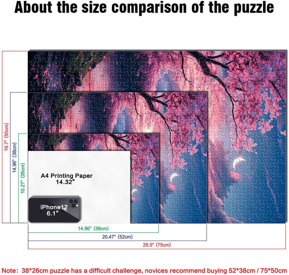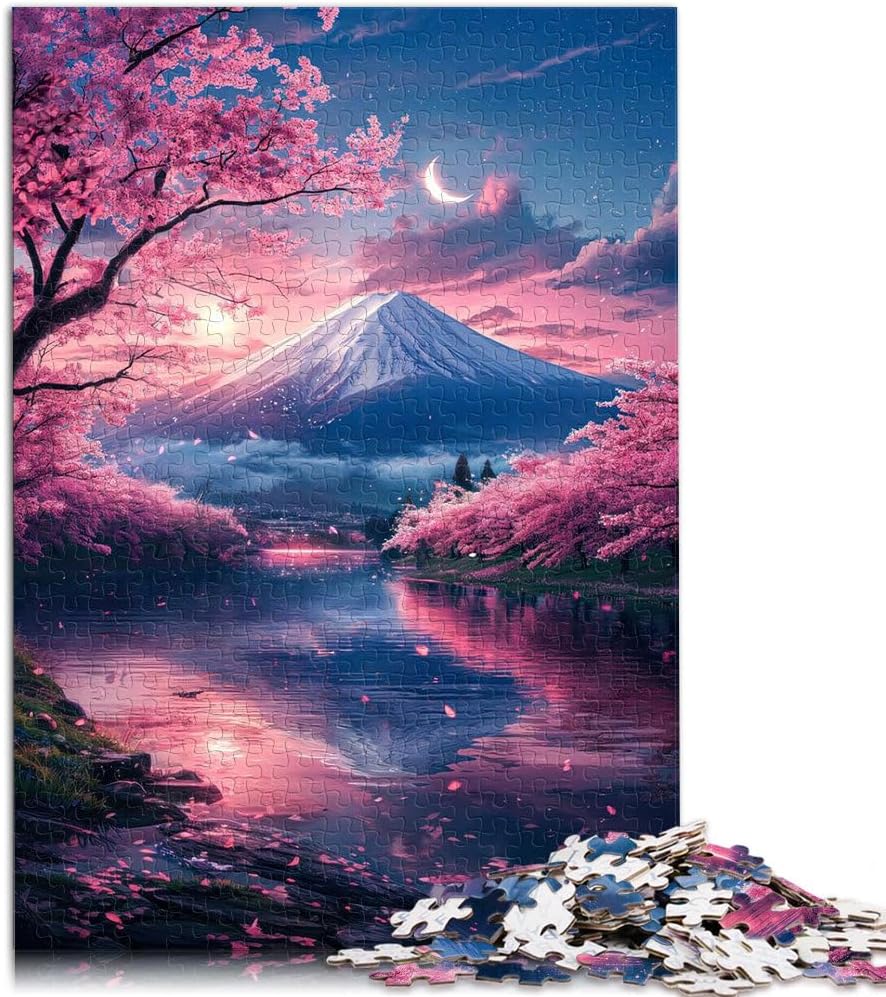 Puzzle da 1000 pezzi per adulti sakura giapponese sul monte fuji Fatto di legno per età pari o superiore a 14 anni Gioco pratico Regali di Natale per le donne misurare:50x75cm