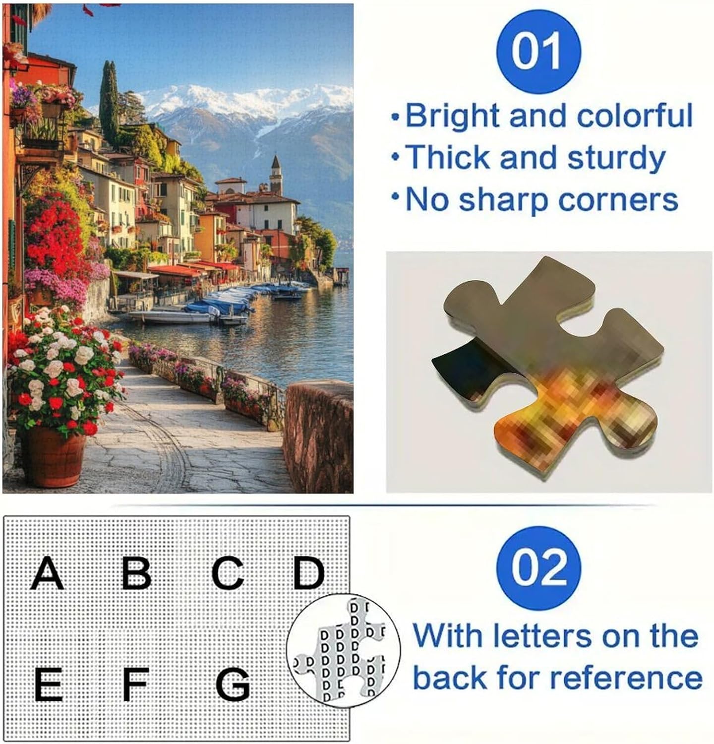 Confezione e design premium: i puzzle per adulti con lettere sul retro sono forniti in una raffinata confezione che include 1000 pezzi, insieme a un poster di riferimento per guidarne l'assemblaggio. Dimensioni finali: (1000 pezzi) 26x38cm, (1000 pezzi) 50x75cm. Puzzle di alta qualità: la superficie del puzzle adotta una tecnologia avanzata per mantenere i colori intensi e brillanti; i puzzle sono realizzati in modo squisito con bordi lisci, che possono essere assemblati strettamente; il retro del puzzle è contrassegnato con le lettere dalla A alla H per aiutare chi costruisce il puzzle a determinare la posizione approssimativa dei pezzi! Gioco di puzzle: i puzzle possono migliorare la memoria; ispirare efficacemente il pensiero delle persone; allenare il loro pensiero, giudizio e pazienza; alleviare lo stress; risolvere i problemi; aumentare la creatività; trascorrere momenti felici con amici e familiari; abilità sociali; migliorare la collaborazione. Puzzle è un gioco magico che non passerà mai di moda. Non è facilissimo da completare, ma una volta completato, sarai orgoglioso di te stesso! Goditi il tempo libero con la famiglia e gli amici! Giochi intellettuali per adulti e adolescenti. Ottima scelta come regalo di compleanno e per le feste. I nostri puzzle sono opere d'arte uniche e, una volta completati, proverai un senso di orgoglio e realizzazione! Sono perfetti per decorare la tua casa, diventando un murale accattivante! Offriamo un valido supporto per i pezzi mancanti; se ricevi i puzzle mancanti, contattaci.