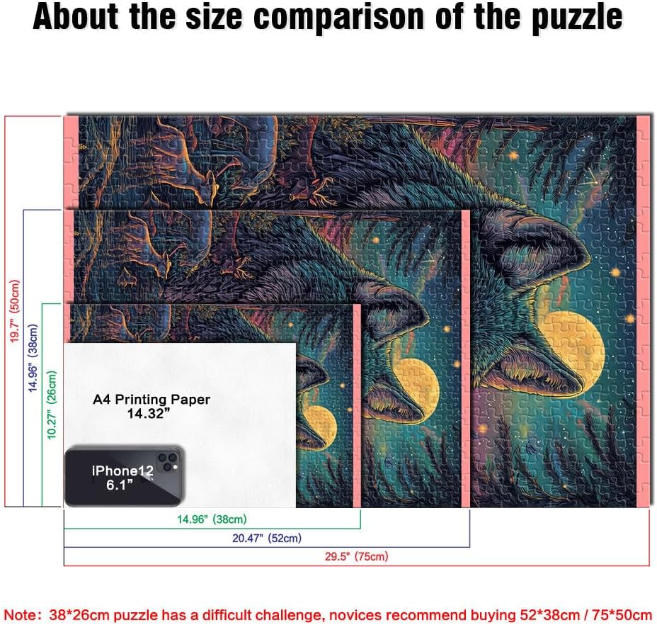 Puzzle da 2000 pezzi con taglio di precisione Dipingere a colori il lupo Fatto di cartone per età 14+ Antistress Sfida difficile Regalo di compleanno di Natale misurare:70x100cm