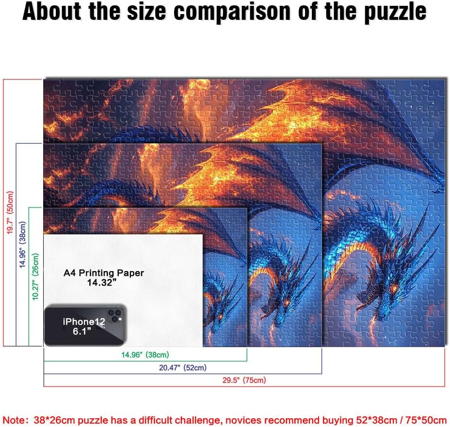 Puzzle da 2000 pezzi con taglio di precisione fiamma del drago Fatto di cartone per età 14+ Sfida difficile apprendimento educativo regalo misurare:70x100cm