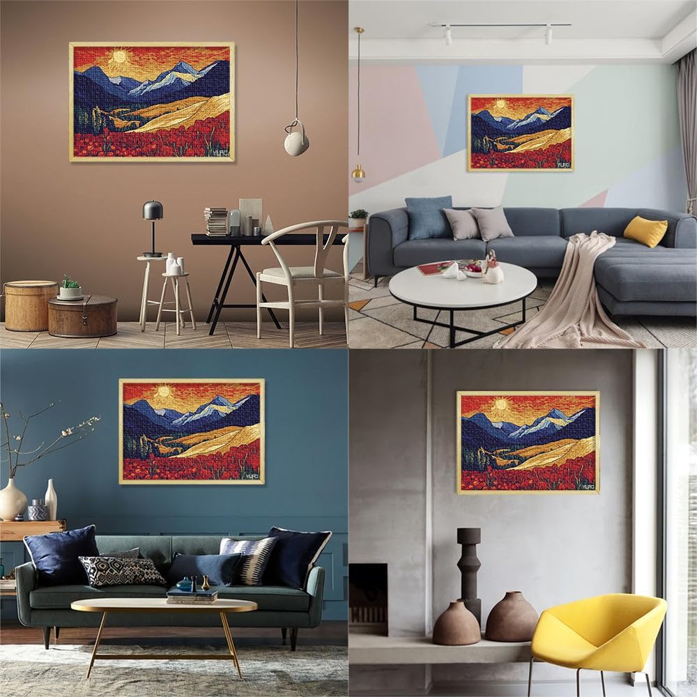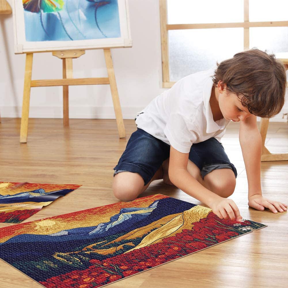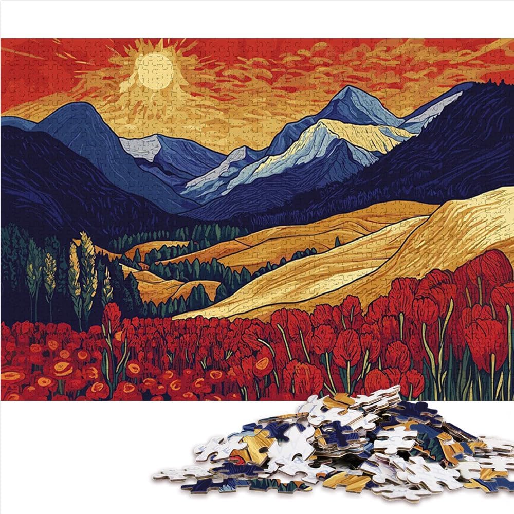Puzzle da 2000 pezzi con taglio di precisione Tramonto in montagna con fiori Fatto di cartone per età 14+ Gioco di puzzle Offerti come regali per tutta la famiglia misurare:70x100cm
