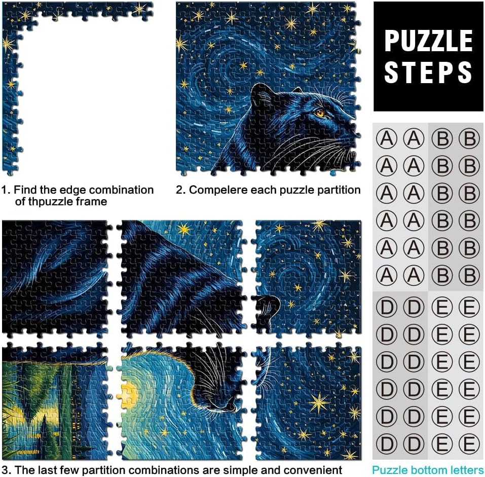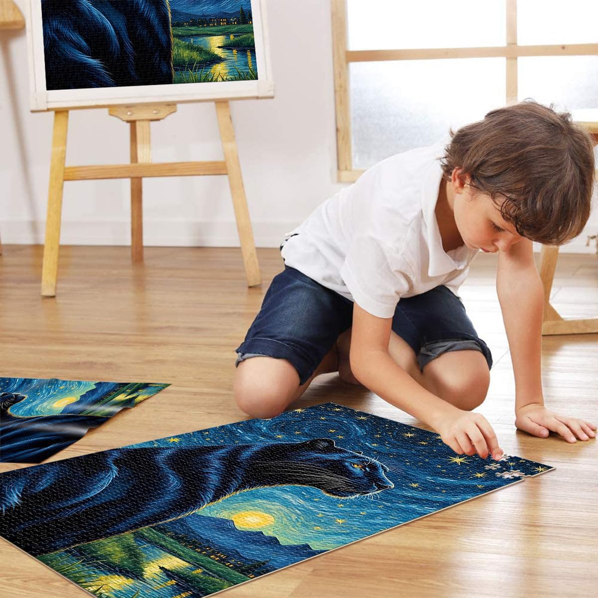 Puzzle da 2000 pezzi per adolescenti Animale Pantera Notte Stellata Fatto di cartone per 14+ Decorazione perfetta Regalo di opere d'arte misurare:70x100cm