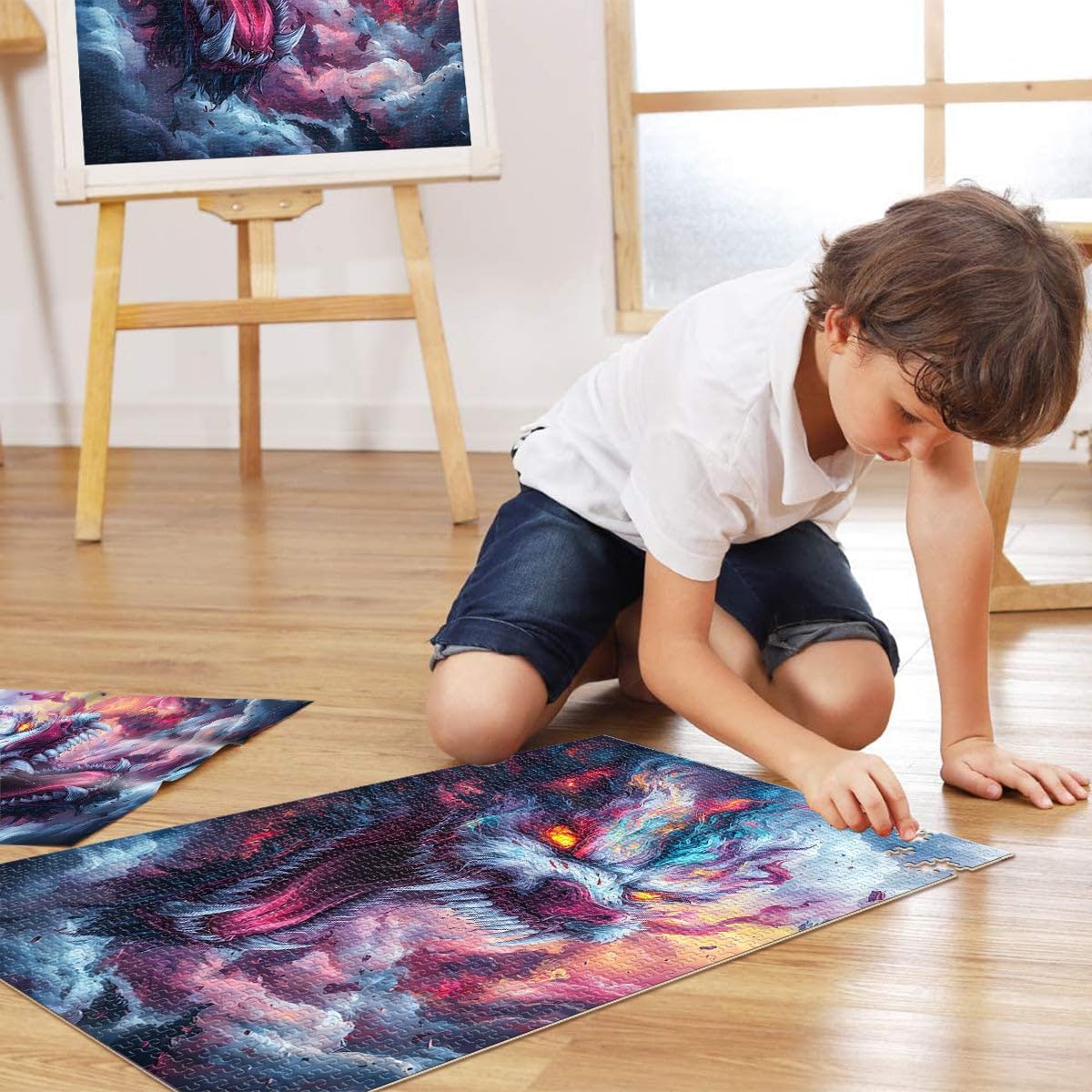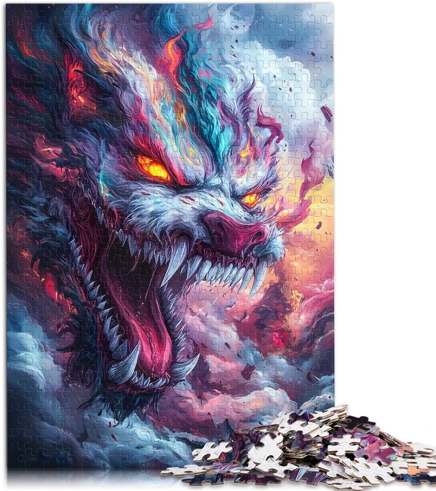 Puzzle da 2000 pezzi per adulti Bestia Lupo Infuocato Fatto di cartone per età pari o superiore a 14 anni con pezzi completamente interconnessi di forma casuale Giocattoli da regalo misurare:70x100cm