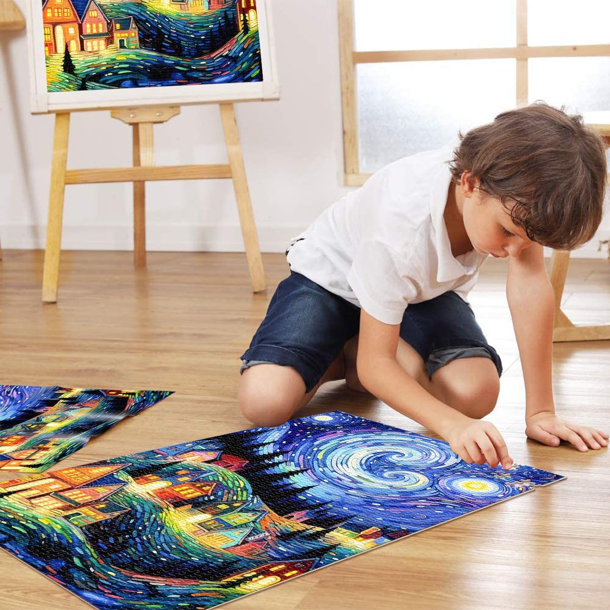 Puzzle da 2000 pezzi per adulti Casa sotto le stelle di notte Fatto di cartone Adatto a partire dai 14 anni Puzzle per Gioco educativo per compleanno e Natale misurare:70x100cm