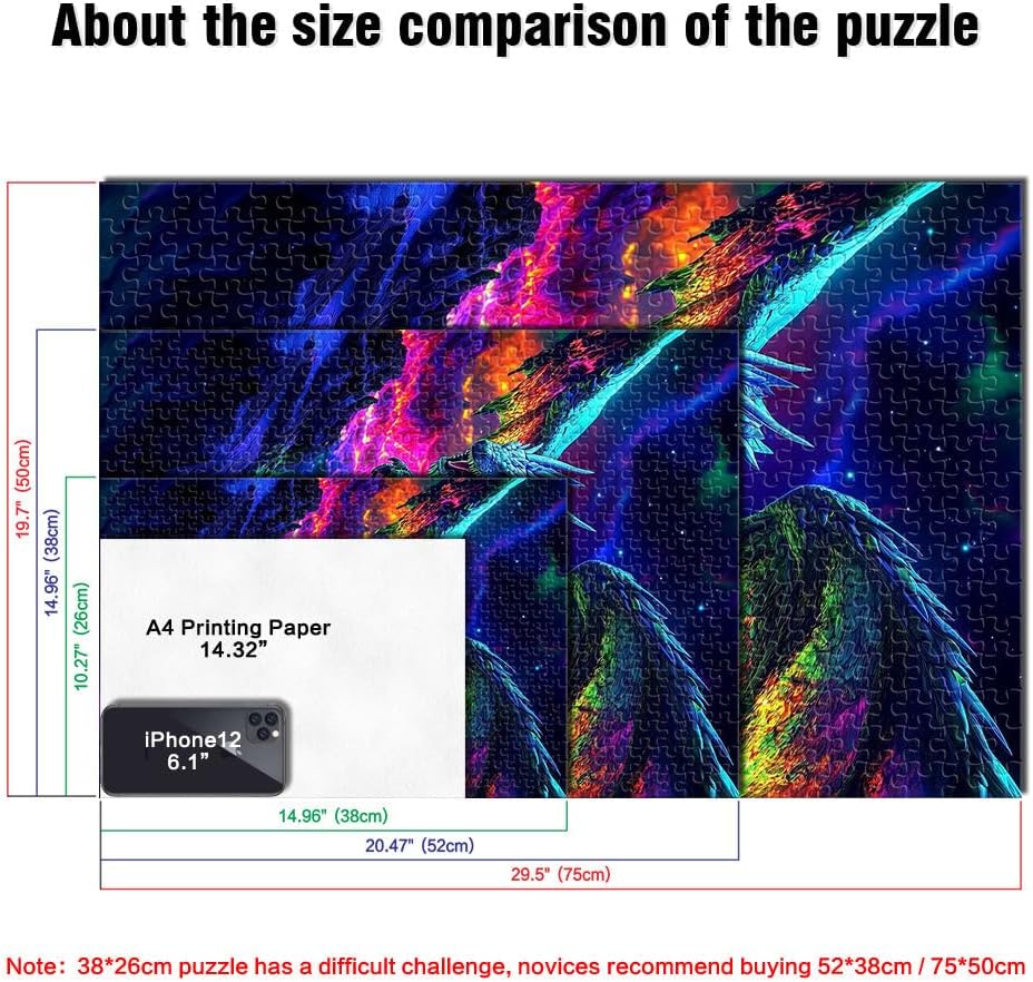 Puzzle da 2000 pezzi per adulti Drago Fatto di cartone Adatto a persone dai 14 anni in su sfida educativa Attività divertenti a casa, regali di compleanno, regali di viaggio misurare:70x100cm