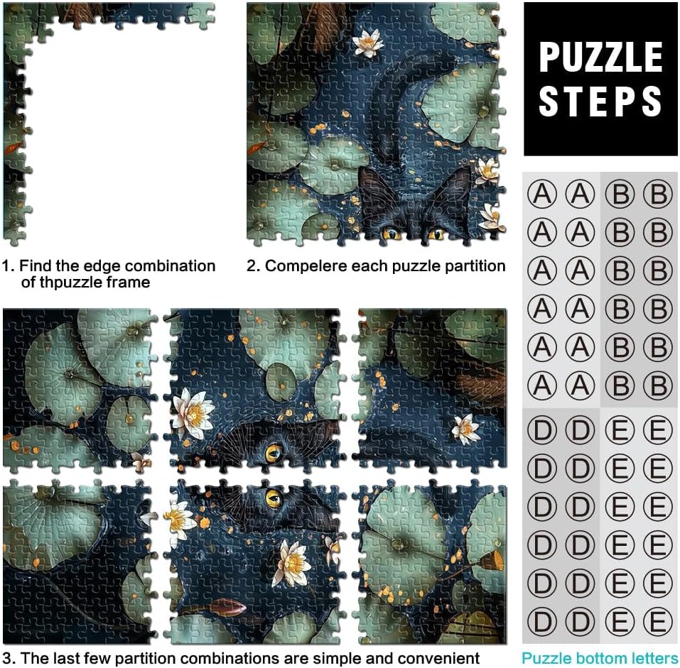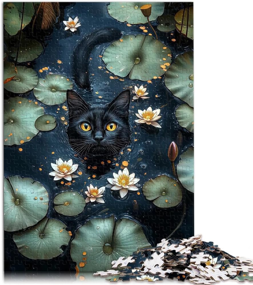 Puzzle da 2000 pezzi per adulti e adolescenti Gatto nero nelle ninfee Fatto di cartone Adatto a partire dai 14 anni Difficile e impegnativo Decorazioni e regali unici per la casa misurare:70x100cm