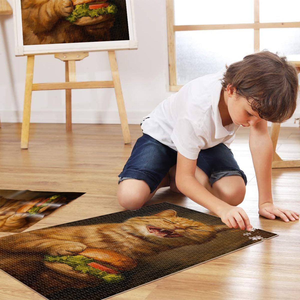 Puzzle da 2000 pezzi per adulti e adolescenti Hamburger di gatto malvagio e felice Fatto di cartone per età 14+ Giocattolo educativo antistress Regalo di compleanno, regali, arte murale
